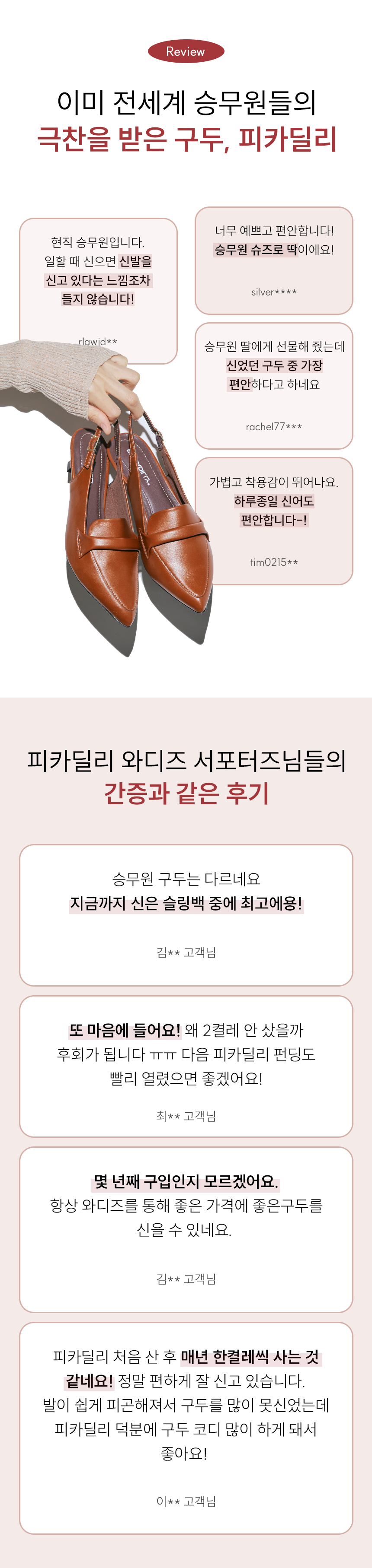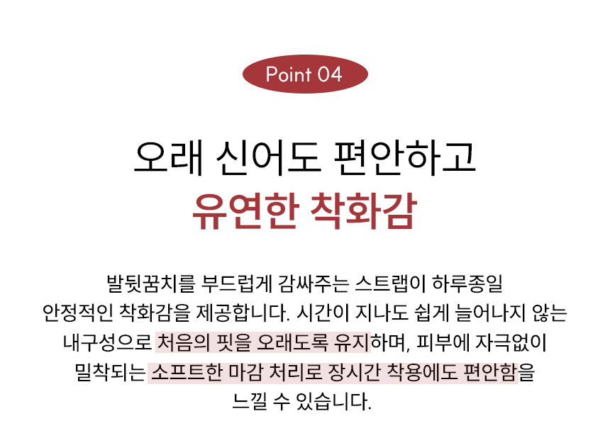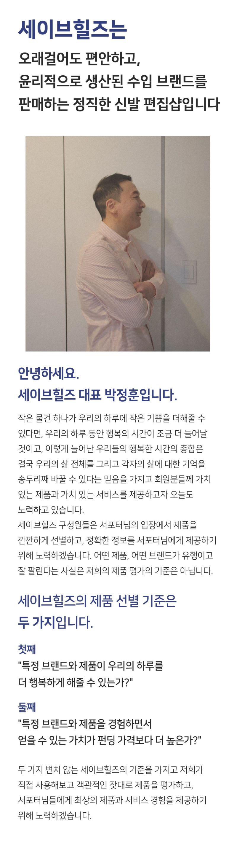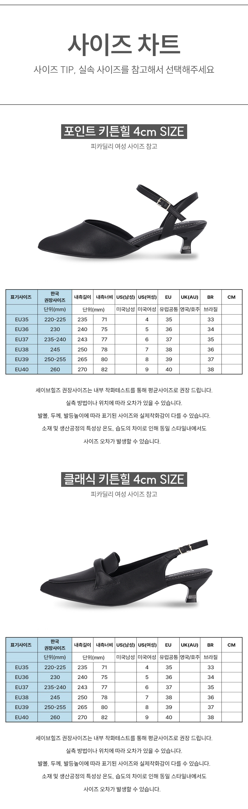 - 사이즈 측정 방식이나 위치에 따라 오차가 있을 수 있으며, 발볼, 두께, 발등의 높이에 따라 표기된 사이즈와 실제 착화감이 다를 수 있습니다. 소재 및 생산 공정의 특성상 온도, 습도의 차이로 인해 동일 스타일 내에서도 사이즈 오차가 발생할 수 있습니다. (최대 오차 범위는 0.5cm 이내입니다.)