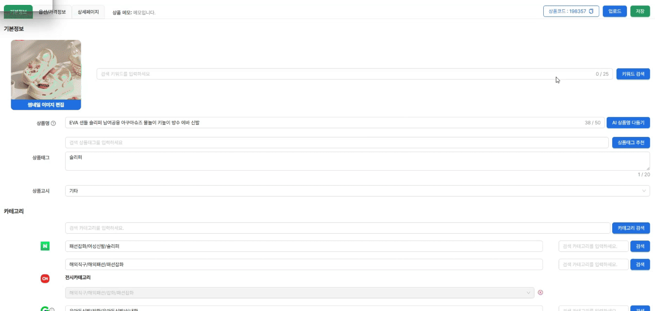 AI 디앤고 솔루션을 활용하여 국내(도매꾹), 해외(타오바오,티몰,1688) 등의 소싱처에서