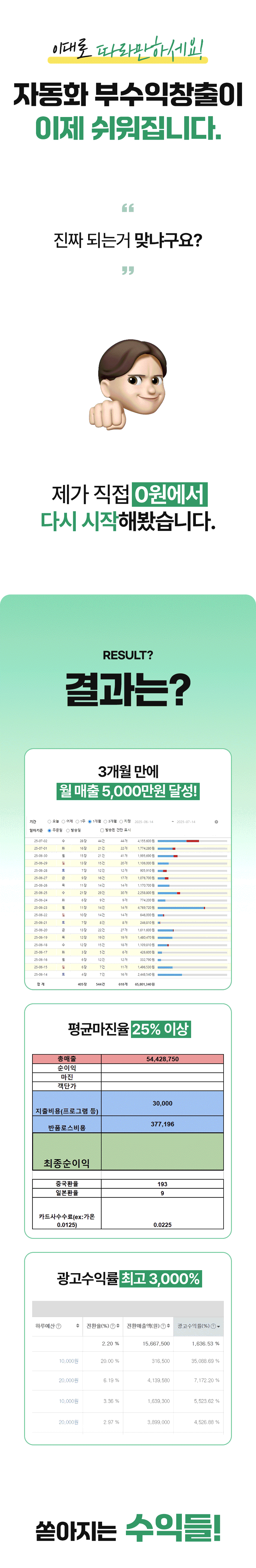 물론 수익 발생 시점은 개인의 실행력이나 상품 구성에 따라 차이가 날 수 있지만, 제가 알려드리는 노하우를 그대로 따라온 분들은 첫 달 이내에 충분한 수익을 만들어냈습니다.