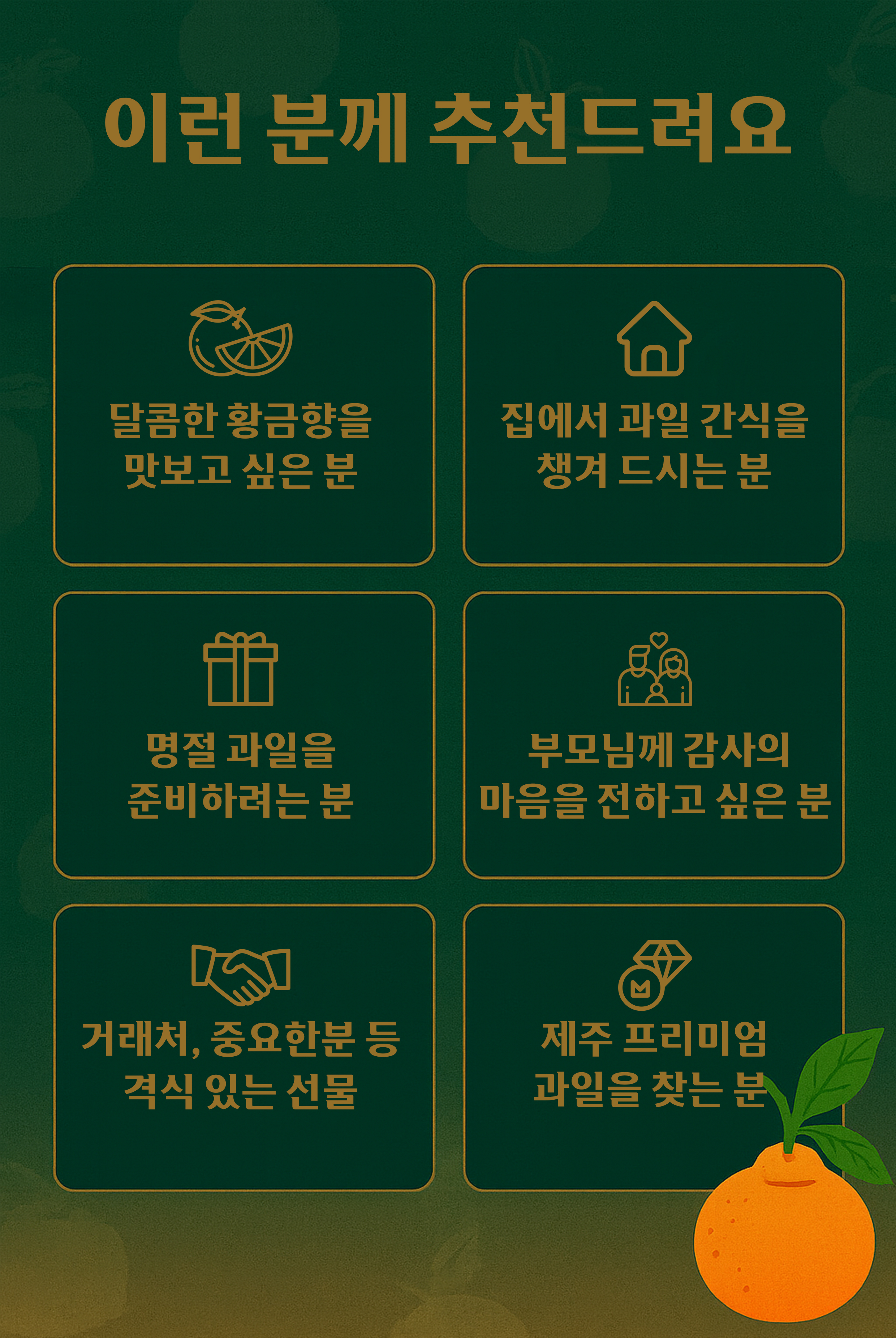 당도와 산도 균형이 뛰어난 프리미엄 감귤을 재배하기에 최적의 환경을 갖추고 있습니다.