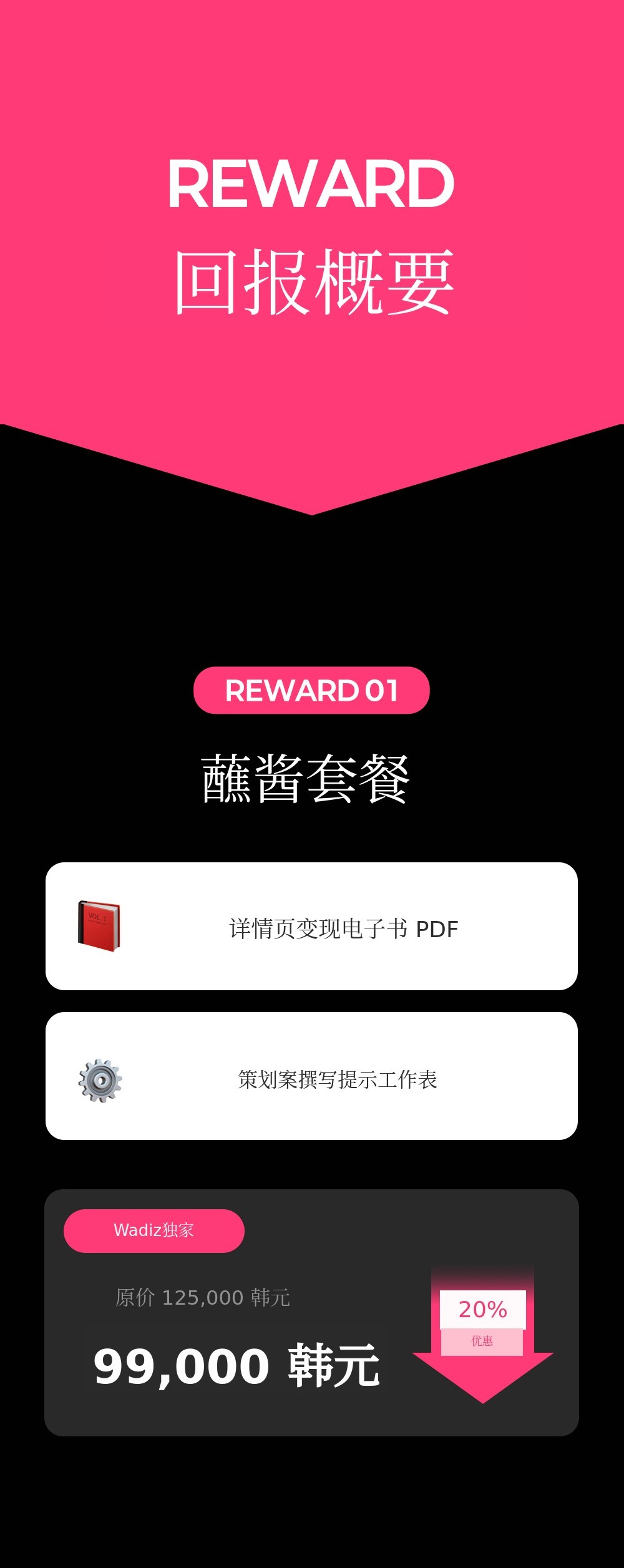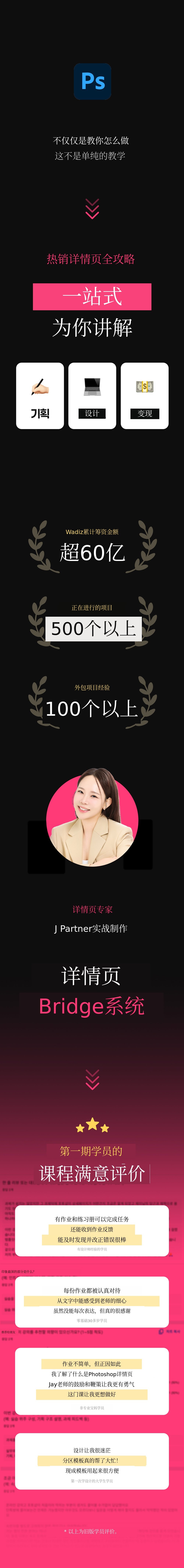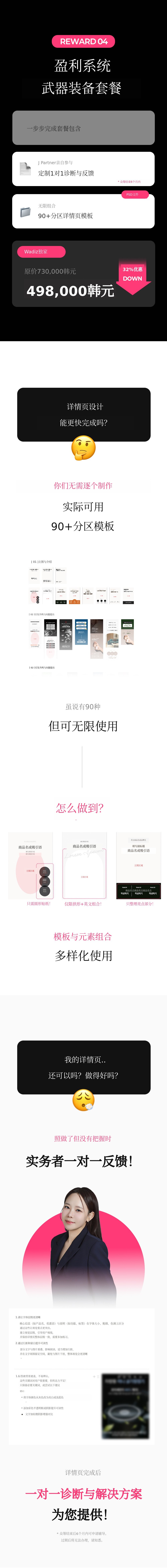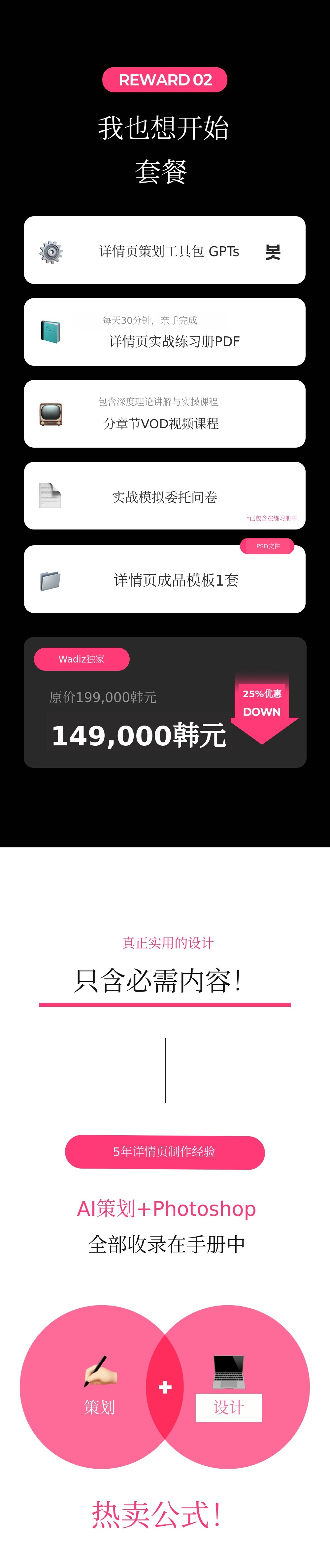 1. 📄 畅销详情页制作系统 - 凭借50亿销售额验证的桥接系统 2. 🚀 从策划到设计一站式教育 - 即使初学者也能轻松实现盈利的课程 3. 🎁 Wadiz独家折扣 - 仅在Wadiz平台提供25%折扣和限量套餐