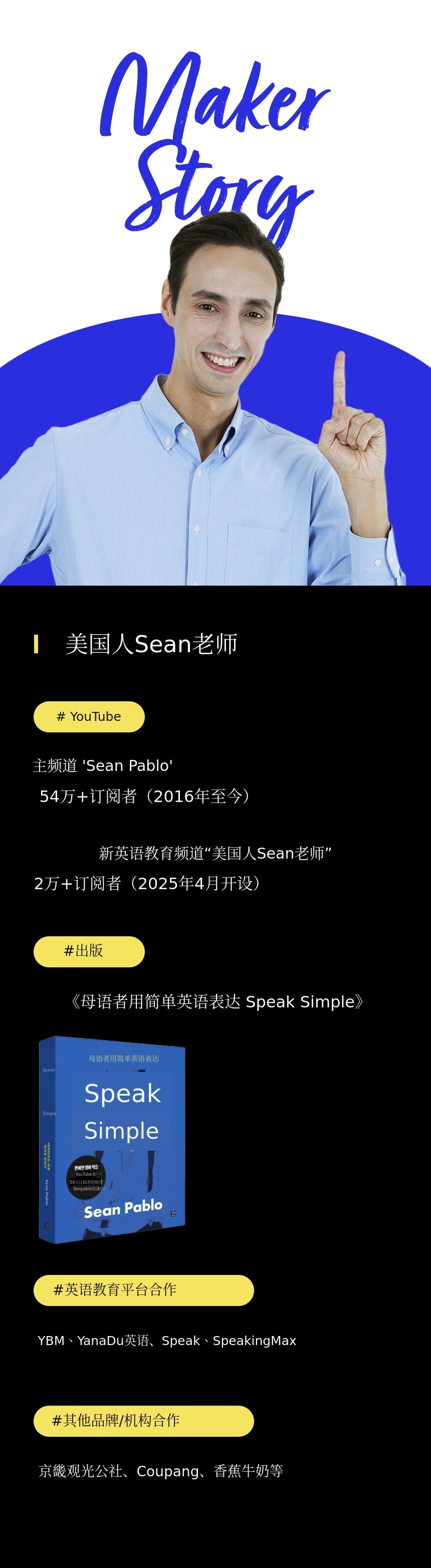 ‘美国人Sean老师’的目标是让韩国学习者能够自信地与母语者交流,享受内容中的英语。 希望通过本次项目,让更多人体验到真正的突破。