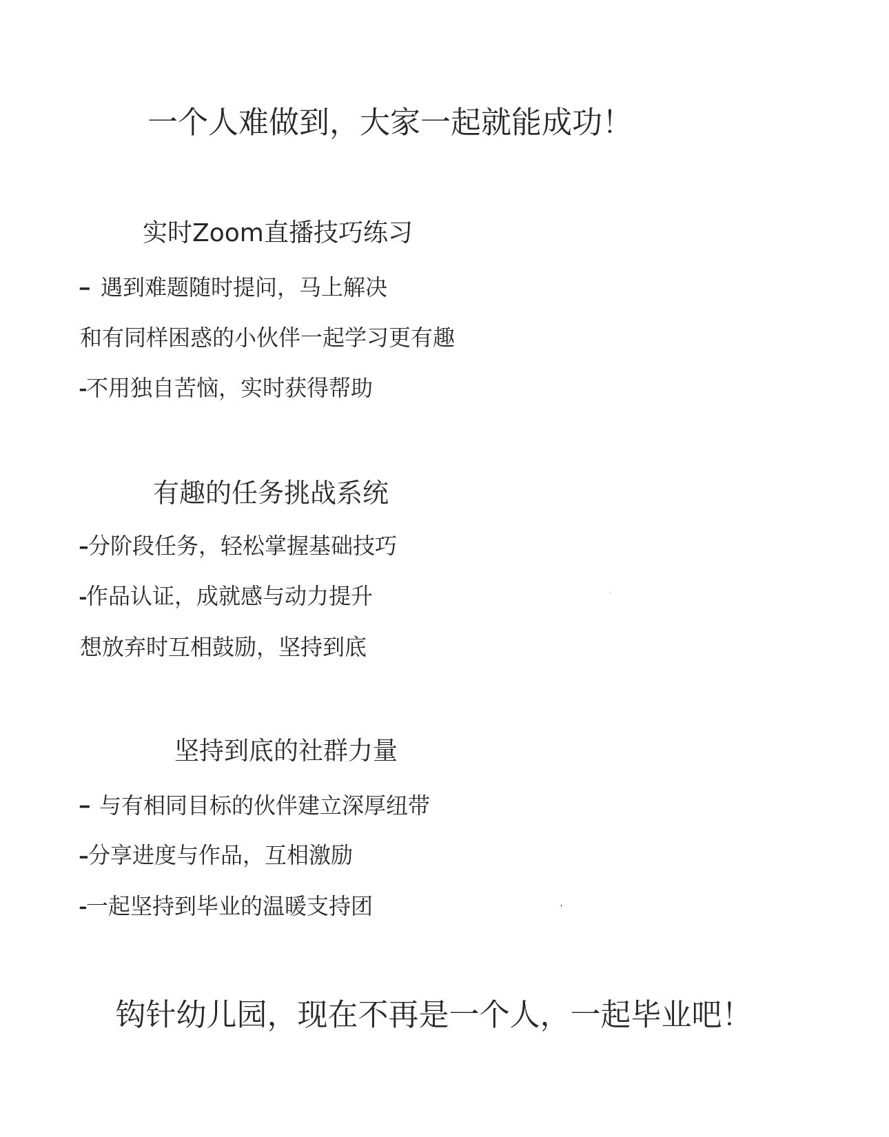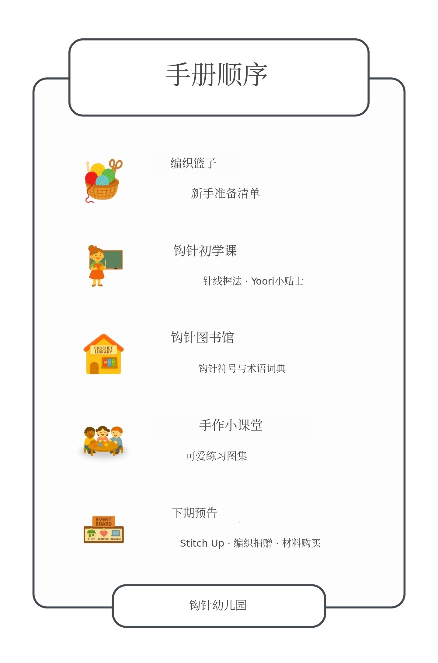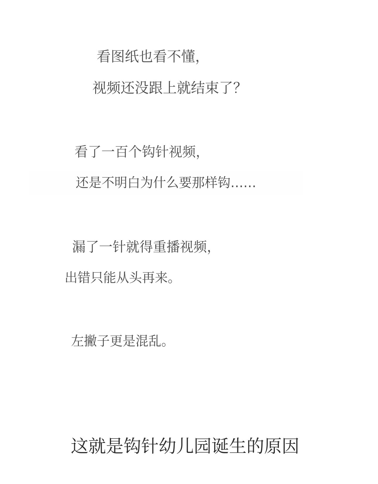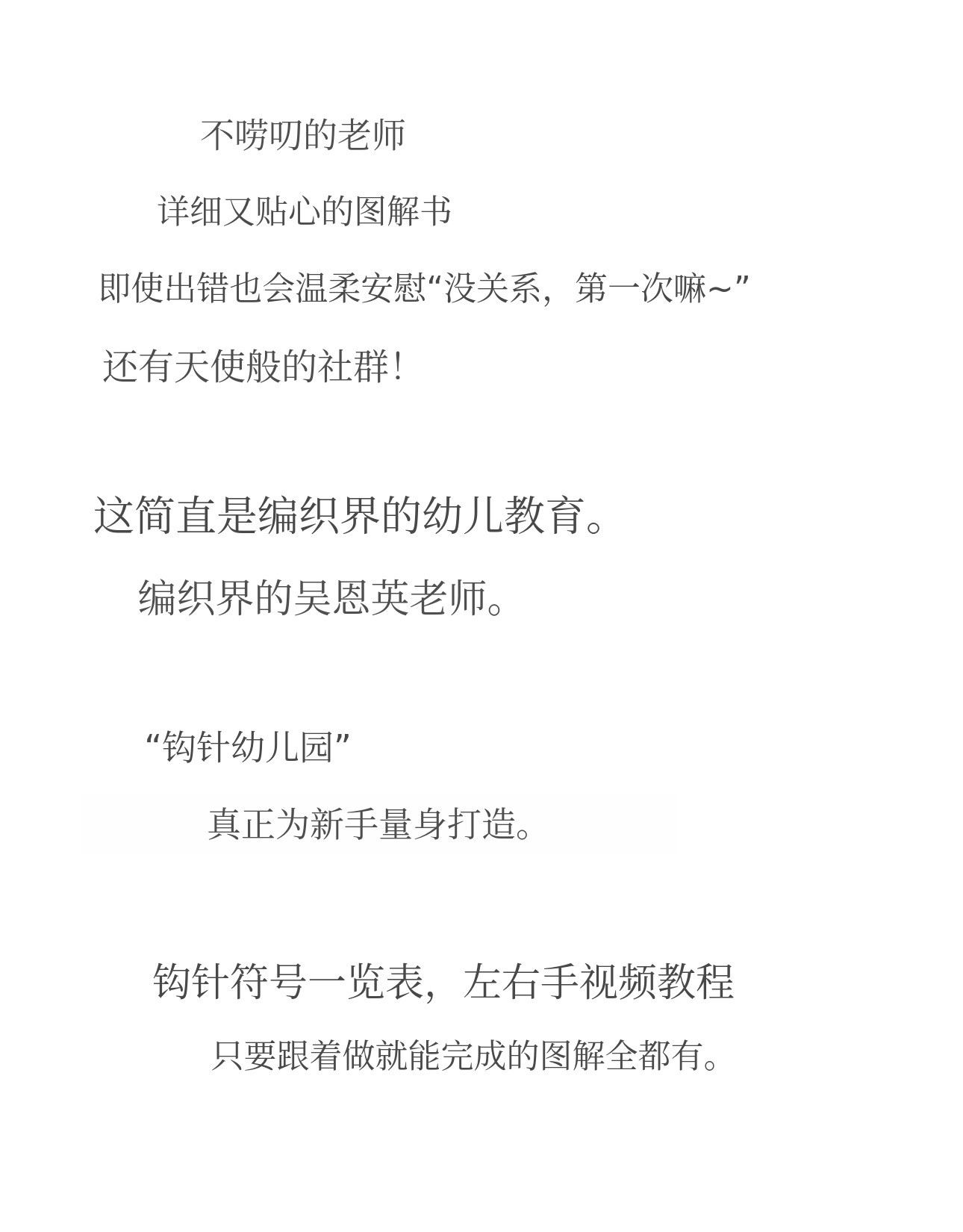 钩针幼儿园是为钩针零基础者量身打造,凝聚了四年经验的验证课程。我们希望也能为您带来坚持到底、不轻言放弃的那份特别体验。