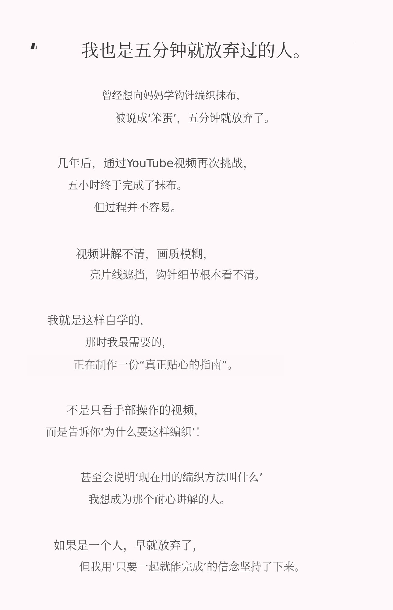 那是我向妈妈学习钩针编织洗碗布时,被说成“傻瓜”,五分钟就放弃的瞬间。