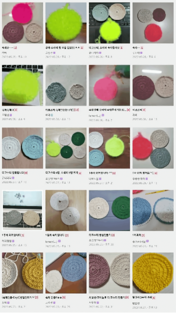 几年后,我又通过YouTube挑战钩针,但因为视频不够友好、画质模糊,才好不容易完成了一个洗碗布。