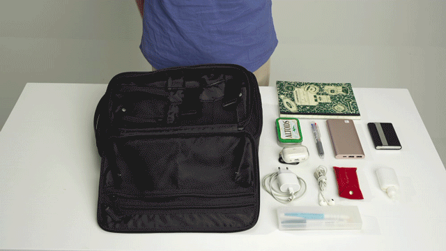 가로형 수납공간으로 이동중 지하철 좌석에 앉아서도 편리한 수납이 가능해요.
