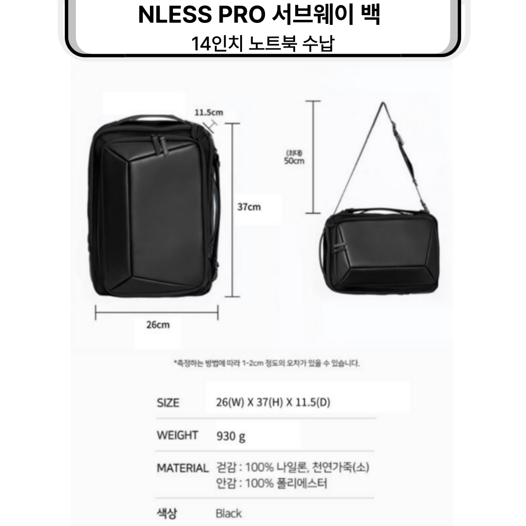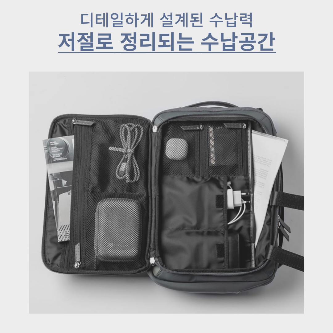 백팩으로 사용시 물건이 섞이지 않는 독립형 수납 구조 !