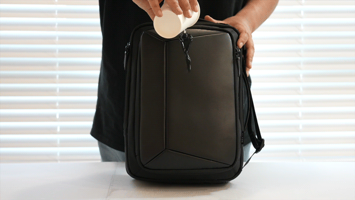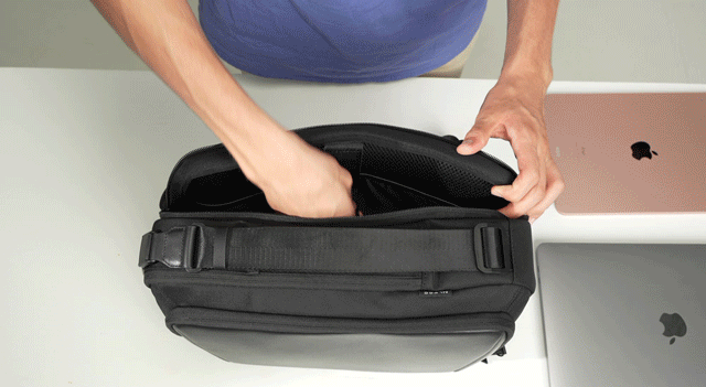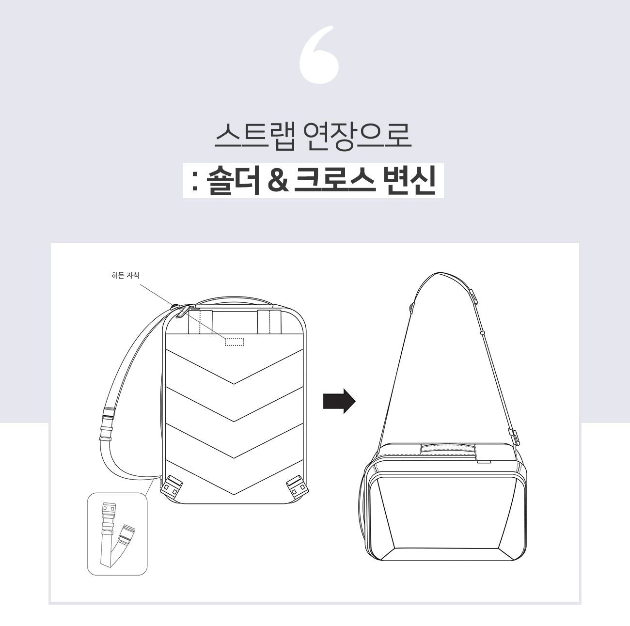 * 백팩을 크로스백으로 바꿀 때 자석버클로 연결된 어깨끈을 분리후 뒷판 포켓에 넣고,
