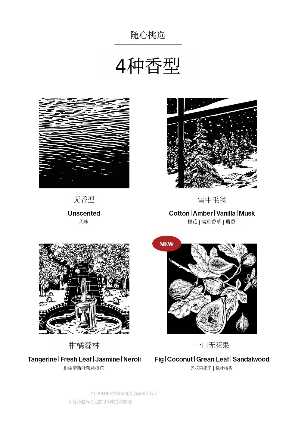 Liriluffy正是为了打破这种千篇一律的相似,尊重并展现使用者的独特性,能够更加突出个性的香气 而诞生的。