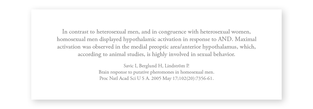 发现性激素类化合物(睾酮类AND(雄烯二酮)和雌激素类EST(雌四烯醇))会引发不同的下丘脑反应。这不仅仅是单纯的嗅觉刺激,