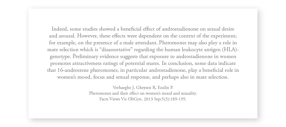 女性暴露于雄烯二酮后,对潜在伴侣的吸引力评价有所提升。总之,一些数据表明16-雄烯类信息素,特别是雄烯二酮