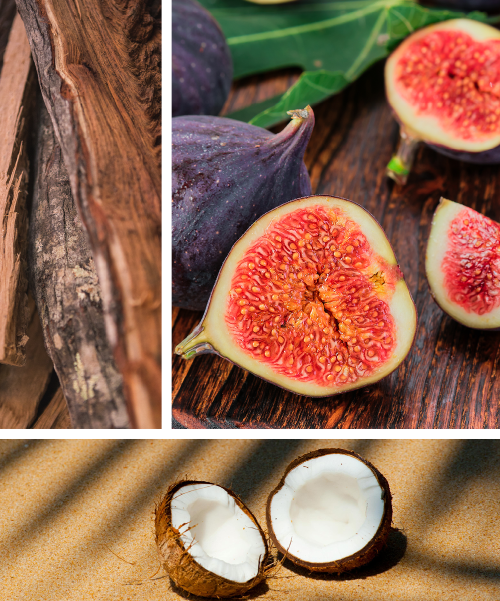 无花果的甜味青柠的清新 锐利地带来平衡不轻浮的 感觉。与以往的无花果香水不同,尾调中木质香气厚重地支撑着 整体上带来安定感。