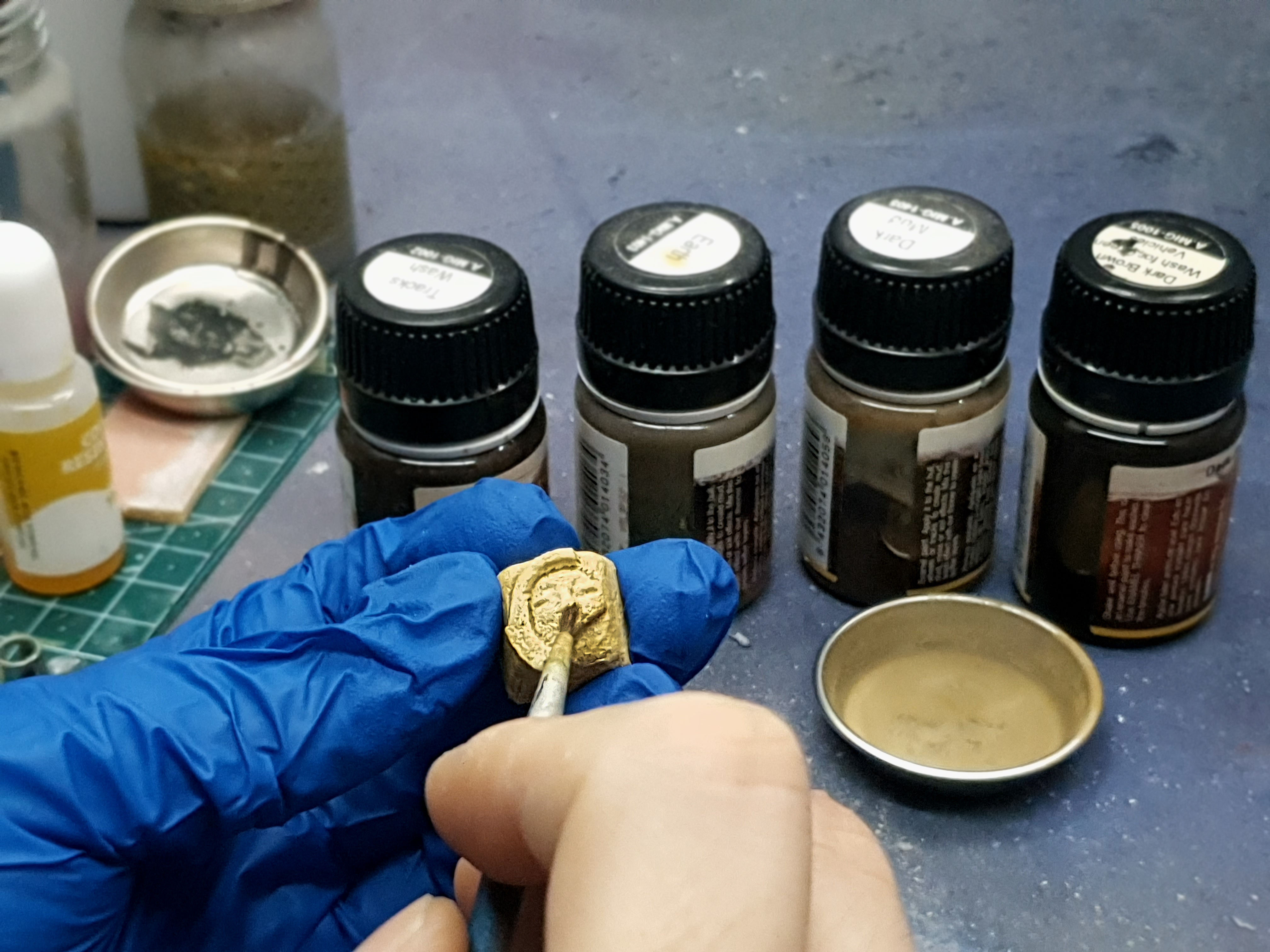 녹이 쓴 청동 느낌이 독특한 느낌을 나타냅니다.