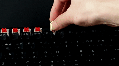 키캡이 잘 안들어갈시 살짝씩 좌우로 움직이며 끼우면 잘 들어갑니다!