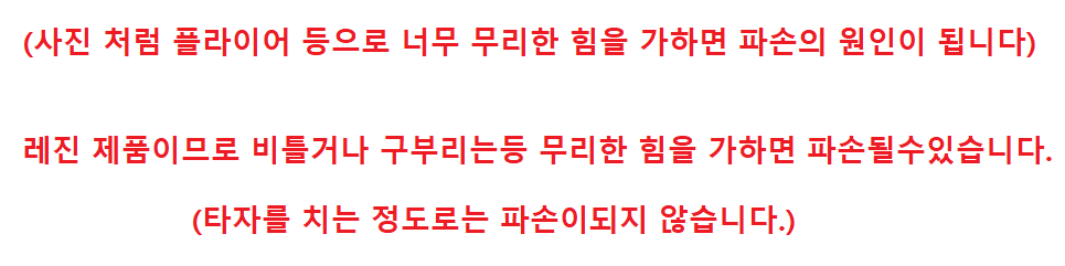 주의사항:일부로 무리한 힘을 가하면 파손의 원인이됩니다.