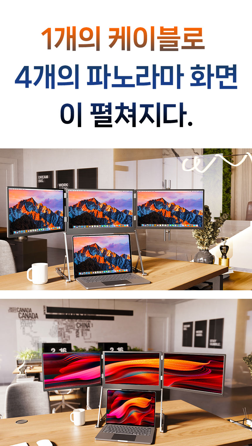 단 하나의 케이블로 노트북을 트리플 스크린으로 확장할 수 있는 혁신적인 솔루션입니다.