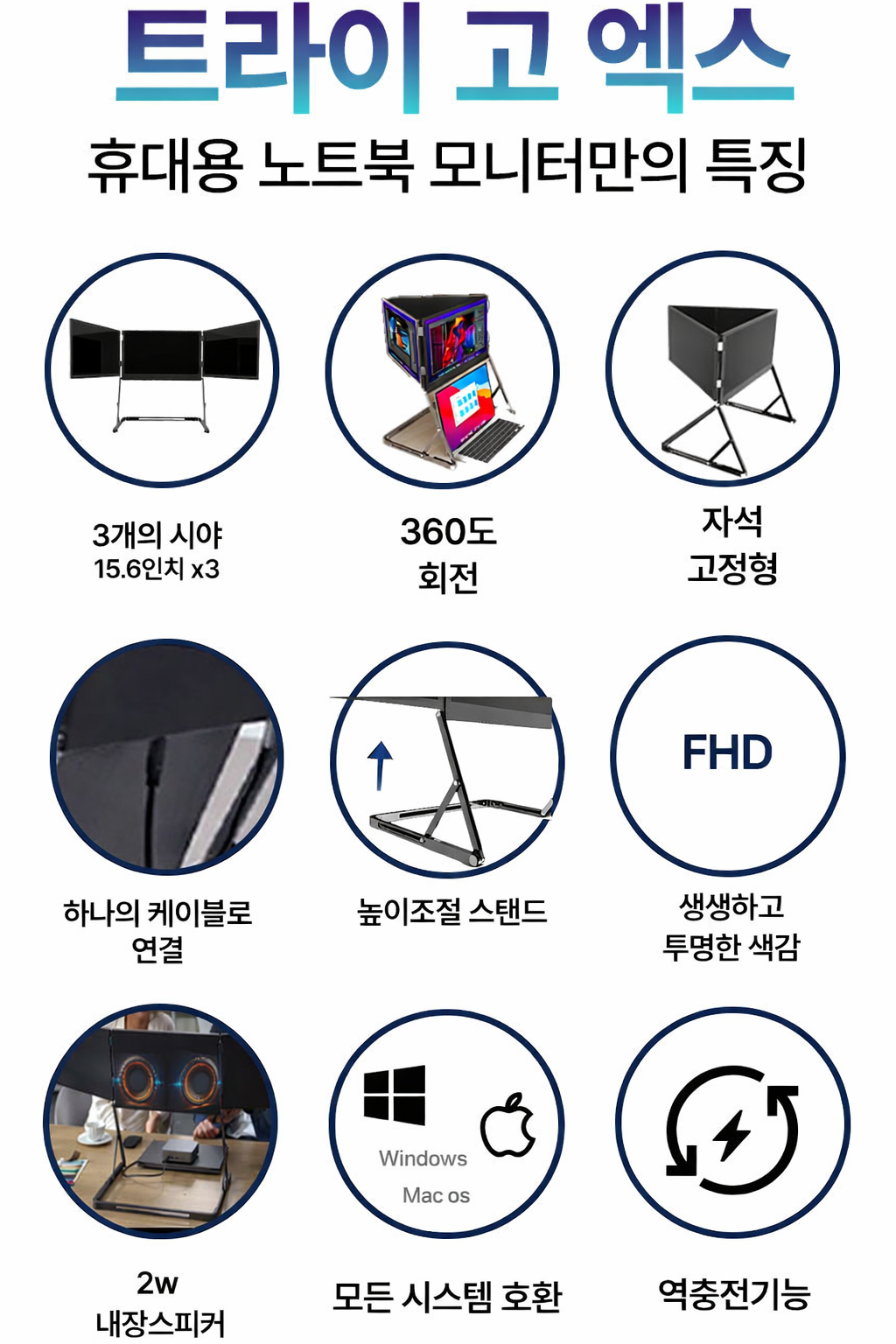 TriGo X는 Type-C 기반으로 작동하는 트리플 확장 모니터입니다.