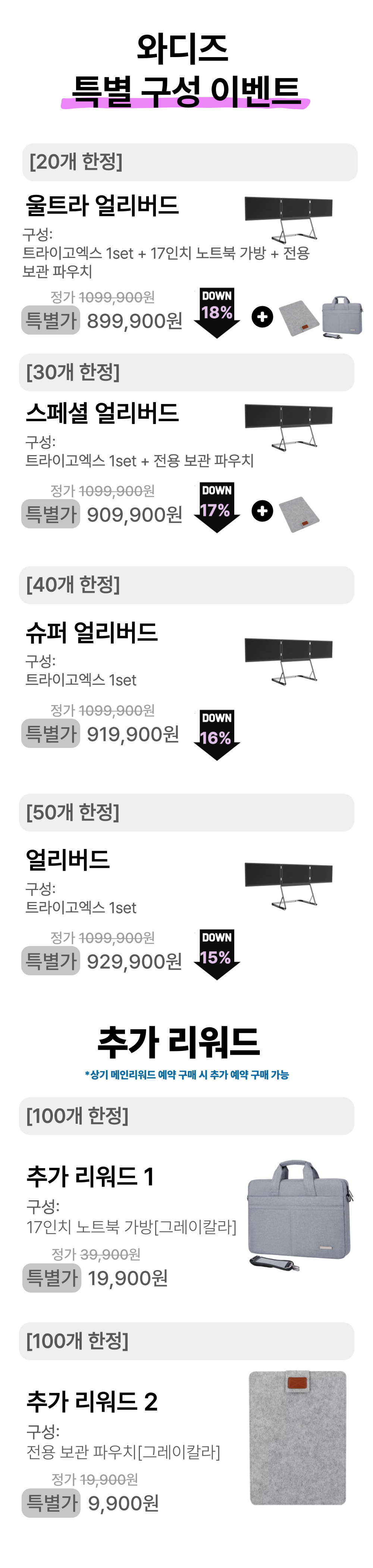 주의: 하기 추가 리워드는 얼리버드 예약 구매 시 혜택으로 드리는 추가 리워드로 단독으로 예약 구매가 어려운 점 참고 부탁드립니다^^