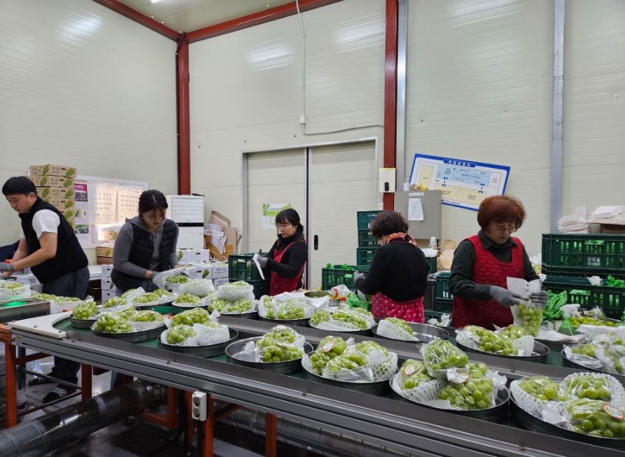 포도 하나하나를 흔들림 없이 고정 포장하고,