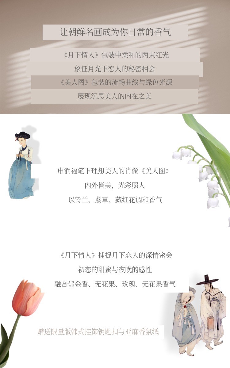 闻香的瞬间,仿佛丝绸韩服的优美线条随风飘扬,优雅的香气随之扩散。