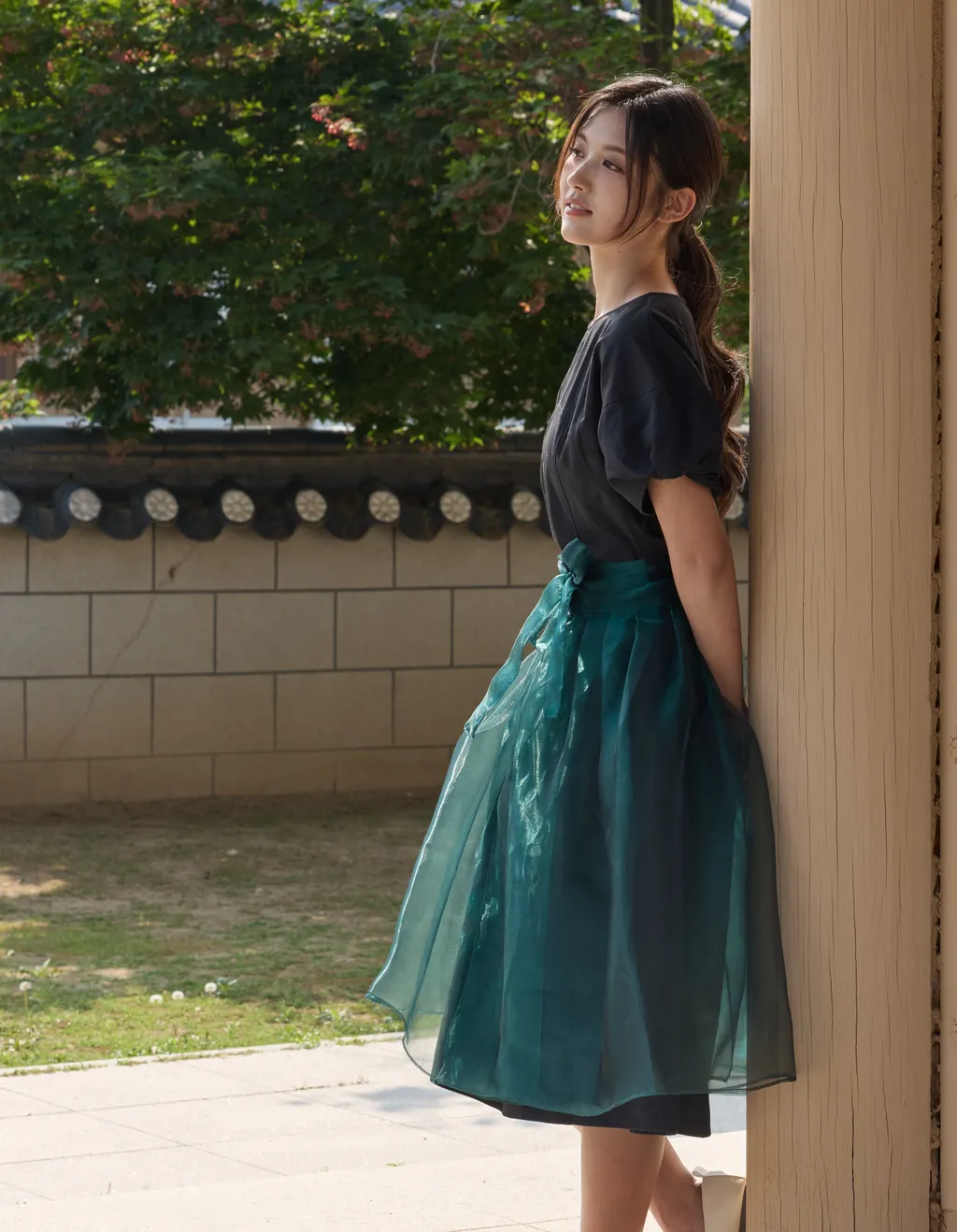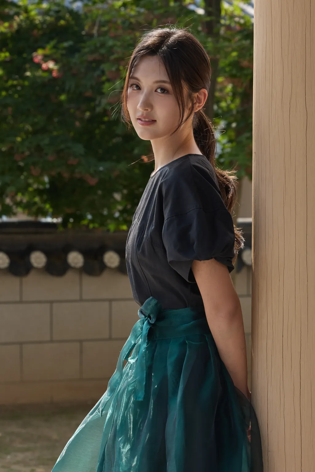 “藏于韩服静谧中的深邃清澈翡翠光”