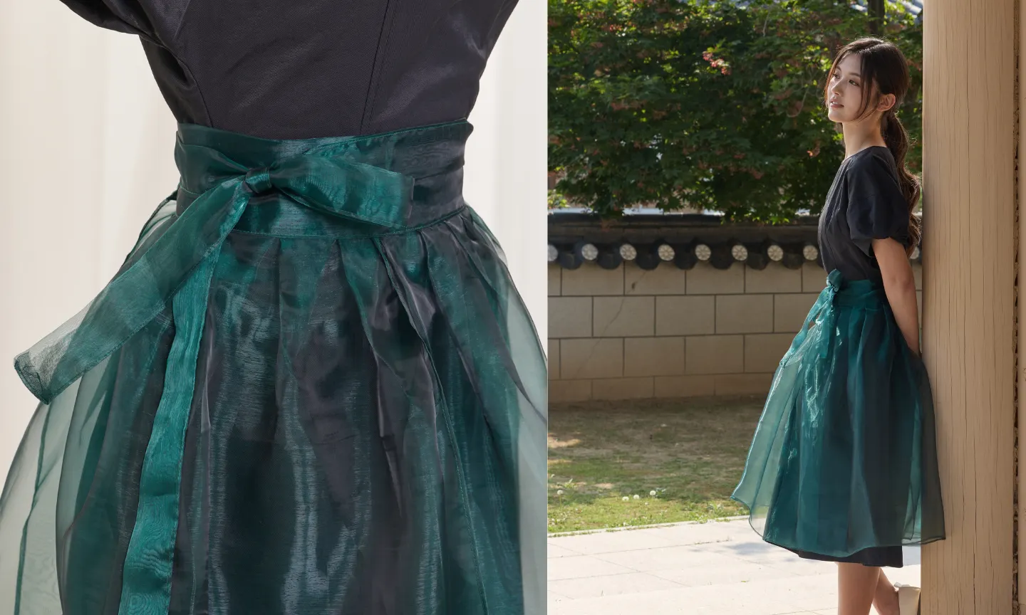 根据光线角度,柔和的光芒扩散,现代地展现了韩服翡翠玉的质感。
