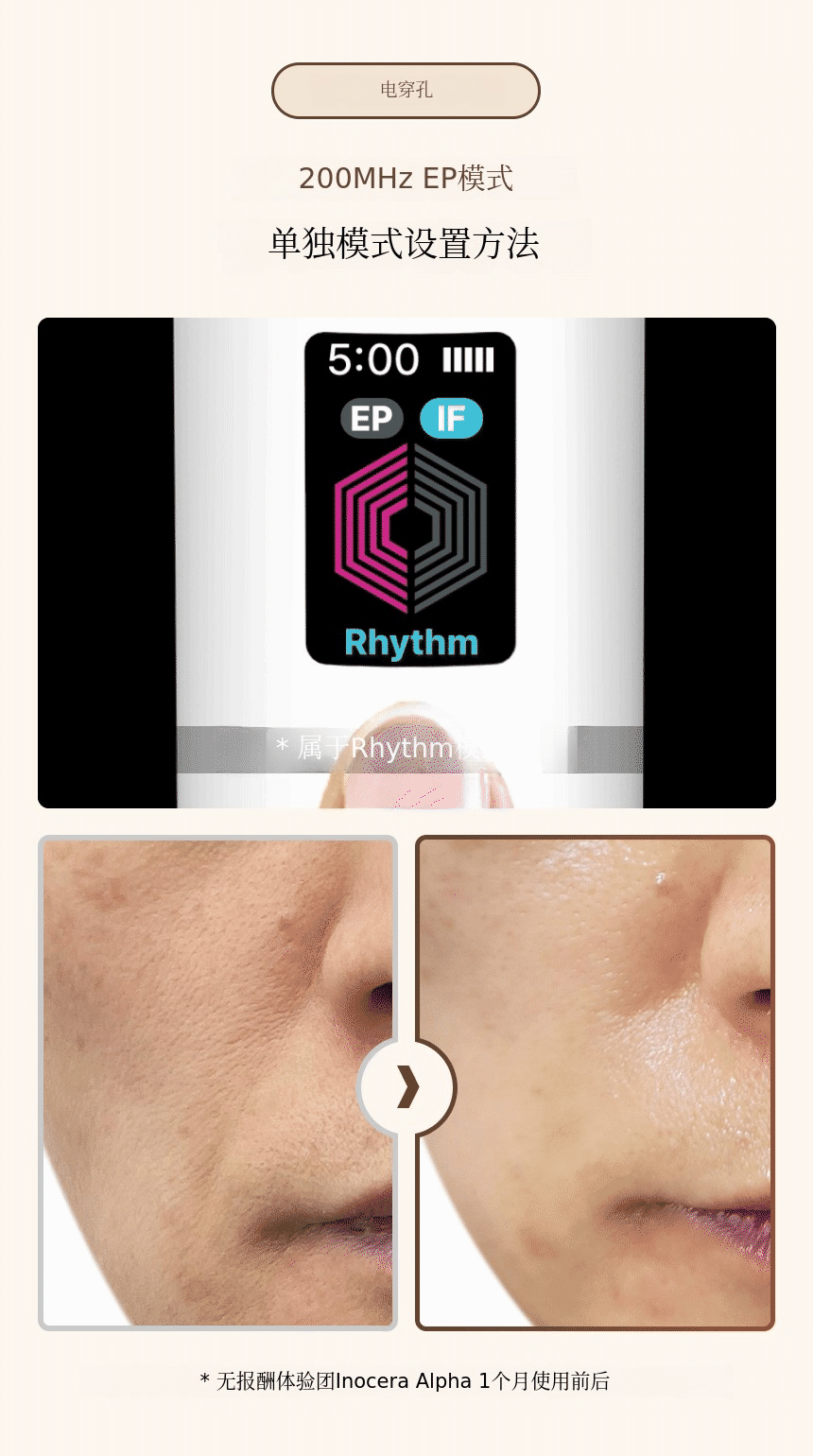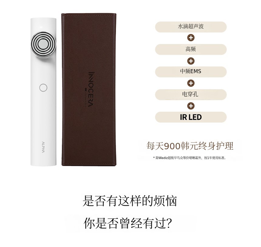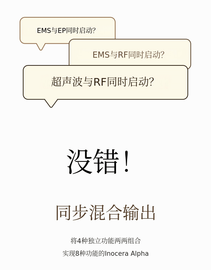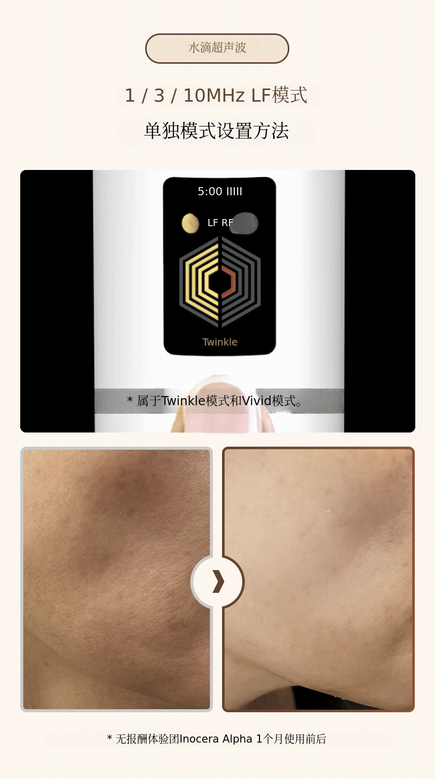 伊诺塞拉Alpha是水滴超声波、高频、中频EMS、电穿孔、IR LED