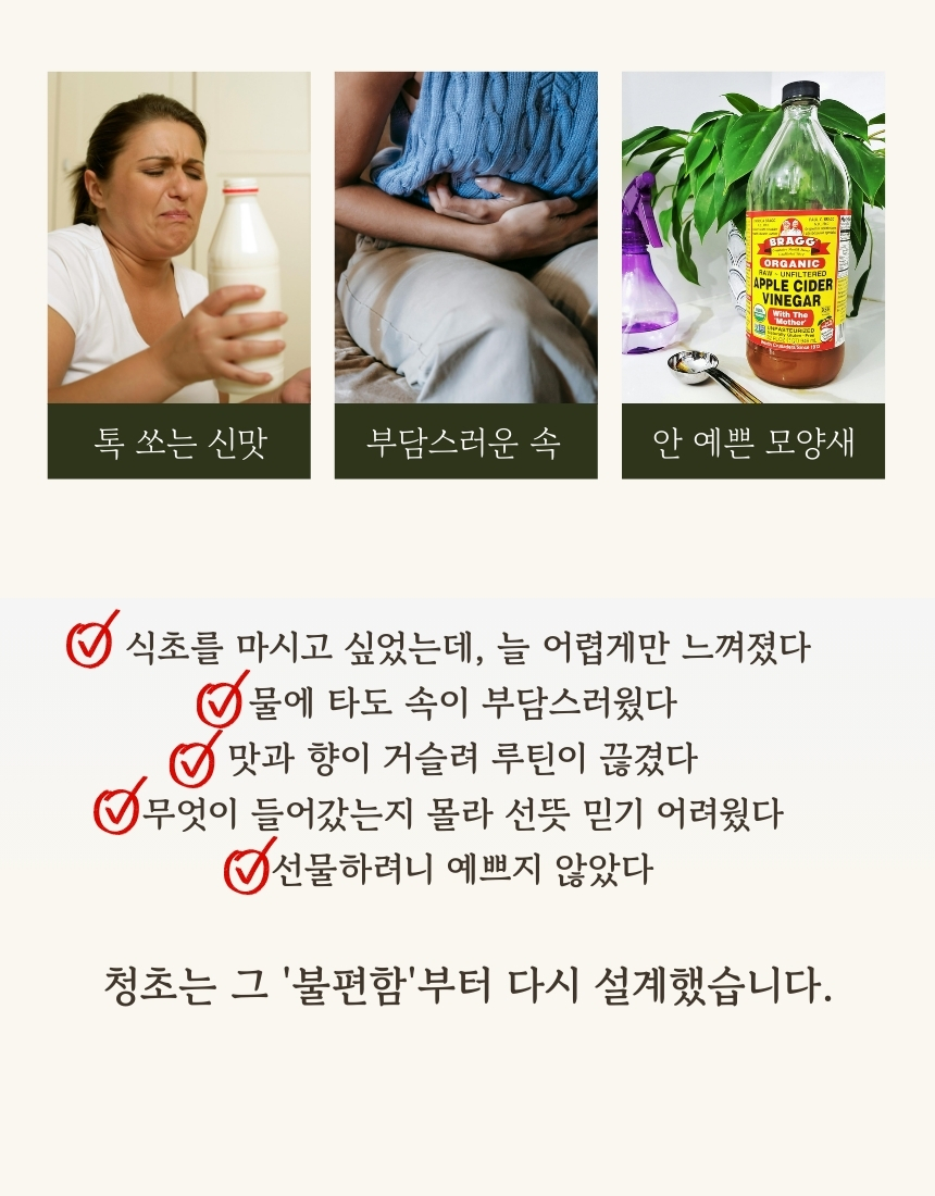 청초는 기존 식초가 지닌 '건강하지만 자극적'이라는 인식을 깨는