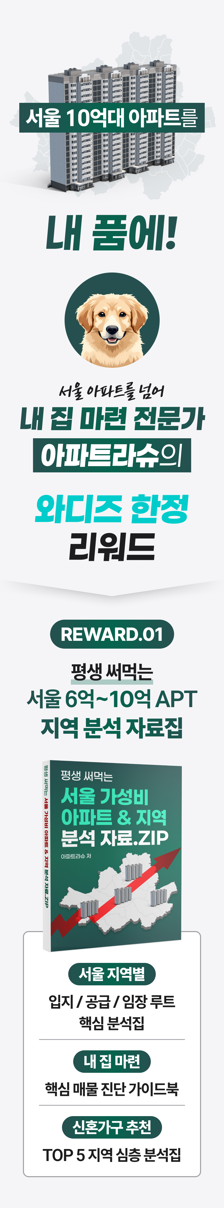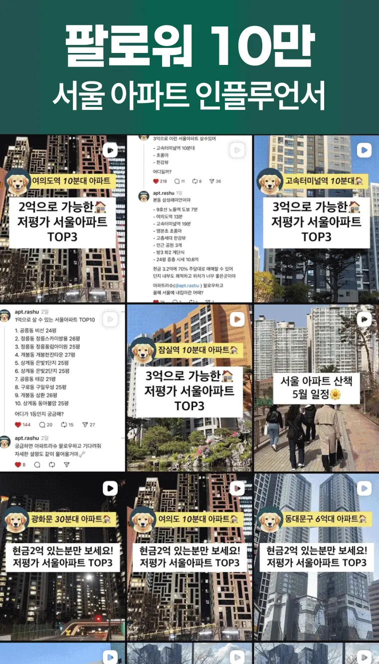 이 모든 분들을 위해, 서울 아파트 전문 10만 인플루언서 아파트라슈의 인사이트를 오직 와디즈 펀딩을 통해 선보입니다.