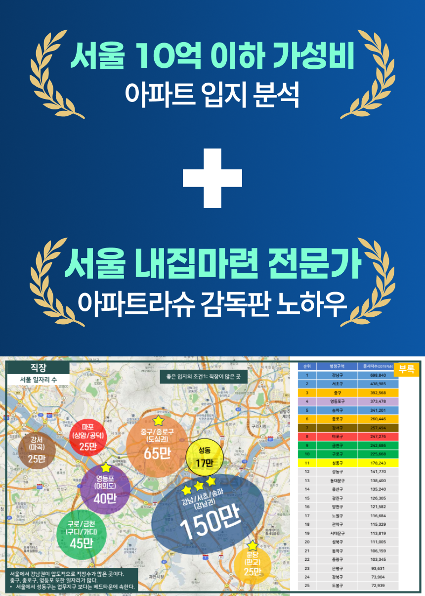 A10: <서울 가성비 1등 아파트 임장&매매 노하우>에서 직장 위치별로 모두 알려드립니다.
