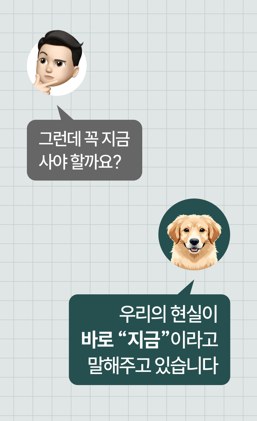아끼고 줄이며 버텼던 사회초년생의 시절을 지나, 지금까지 성실히 모아오신 시드 머니로 사실 우리는 무슨 일이든 할 수 있습니다.