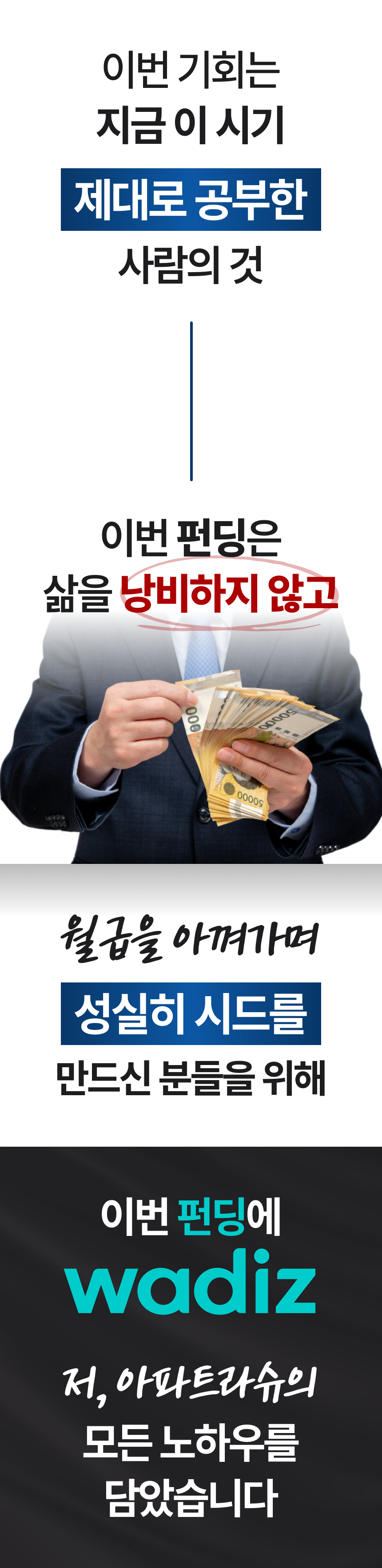 현재의 자산을 진단하고, 미래의 가치를 누구보다 먼저 살피고 계획하는 와디즈 서포터분들께 가장 먼저 소개해드리고 싶었습니다.