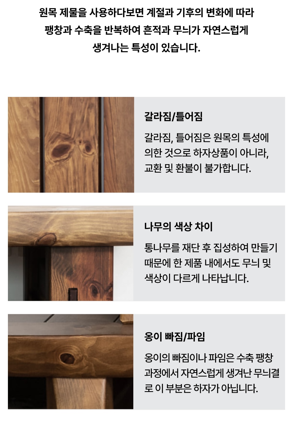 리워드 하자가 아닌 경우 | 갈라짐/틀어짐, 나무색상차이, 옹이빠짐파임 |