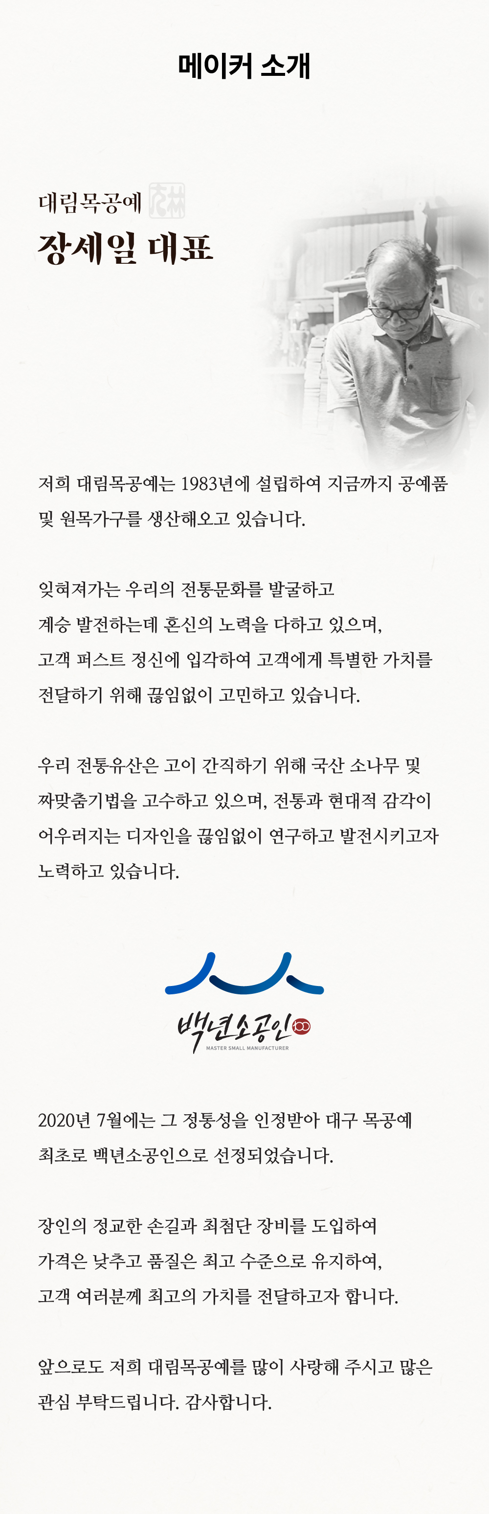 40년 전통 목공예 외길만을 걸은 대림목공예를 향한