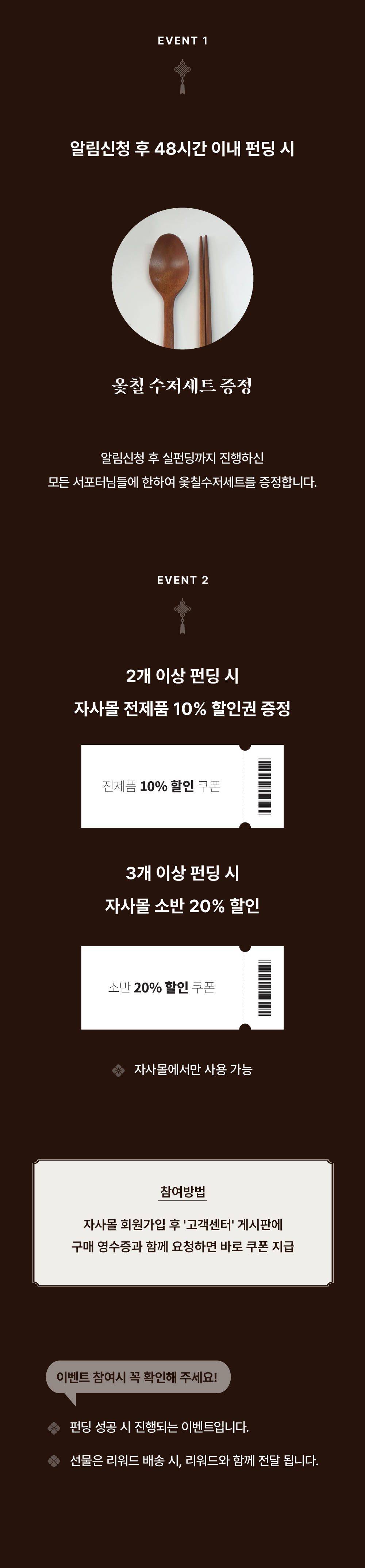 - 펀딩금 반환 시 제품이 파손되어 배송될 경우, 교환/펀딩금 반환 처리가 어려우니 품/파손이 없도록 안전하게 재포장해주시기 바랍니다.