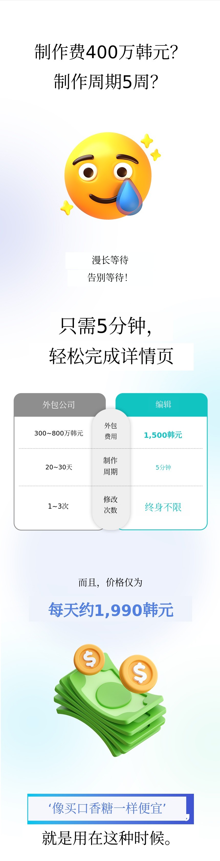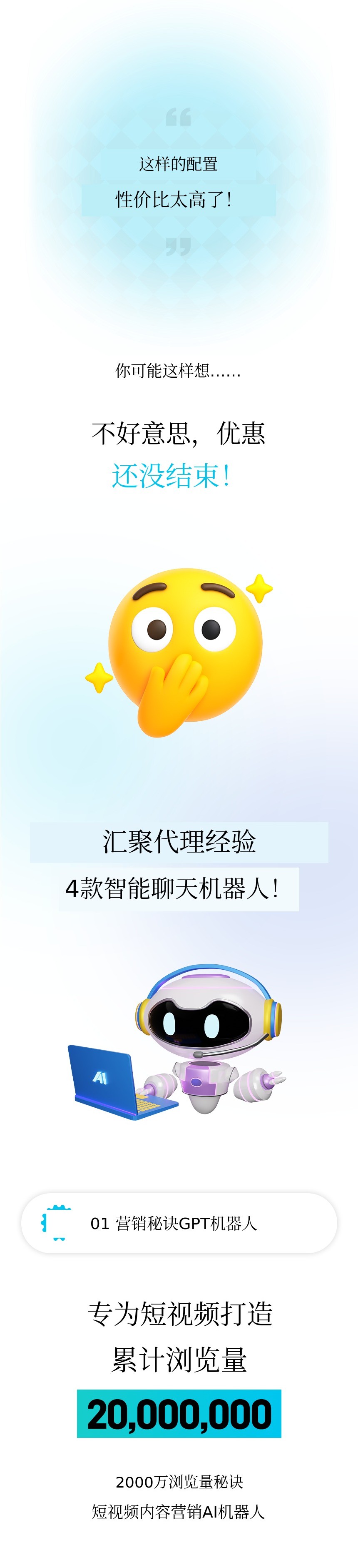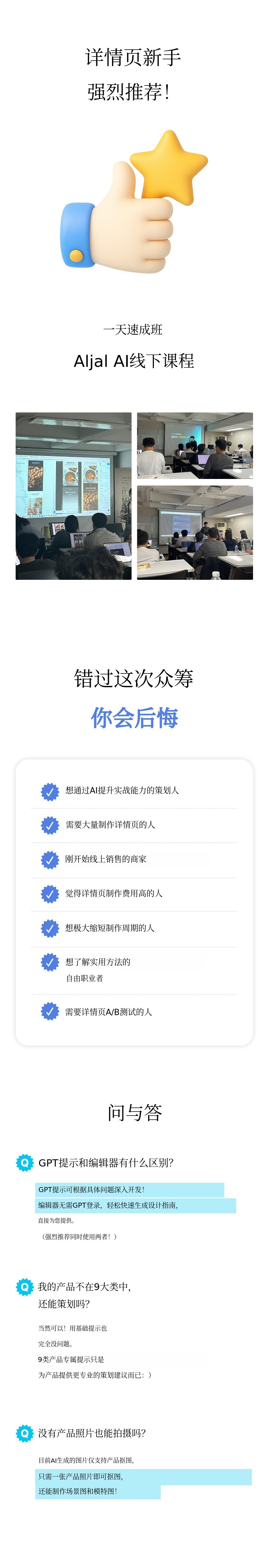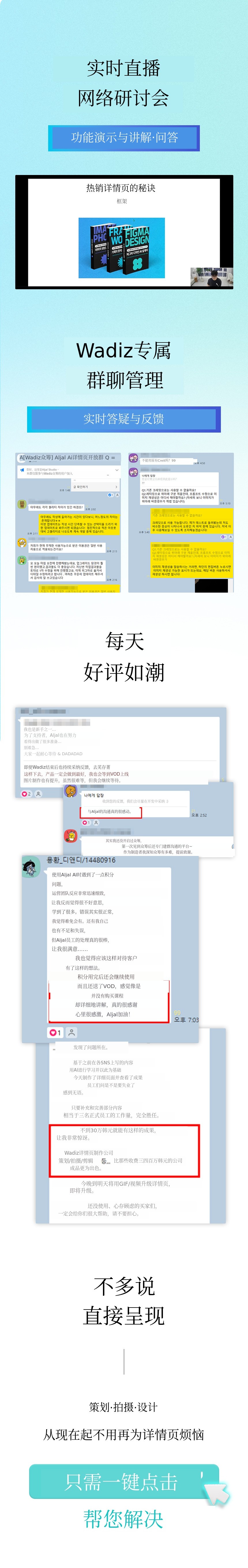 1. 🖥️ AI详细页面制作服务 - 5分钟完成专家级页面制作 2. 🎓 实时直播培训 - 功能演示与问答即时反馈 3. 💸 节省外包费用 - 基于30亿销售经验,成本大幅降低