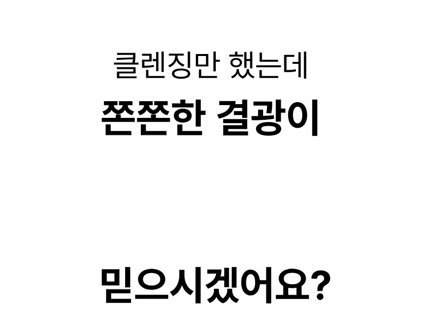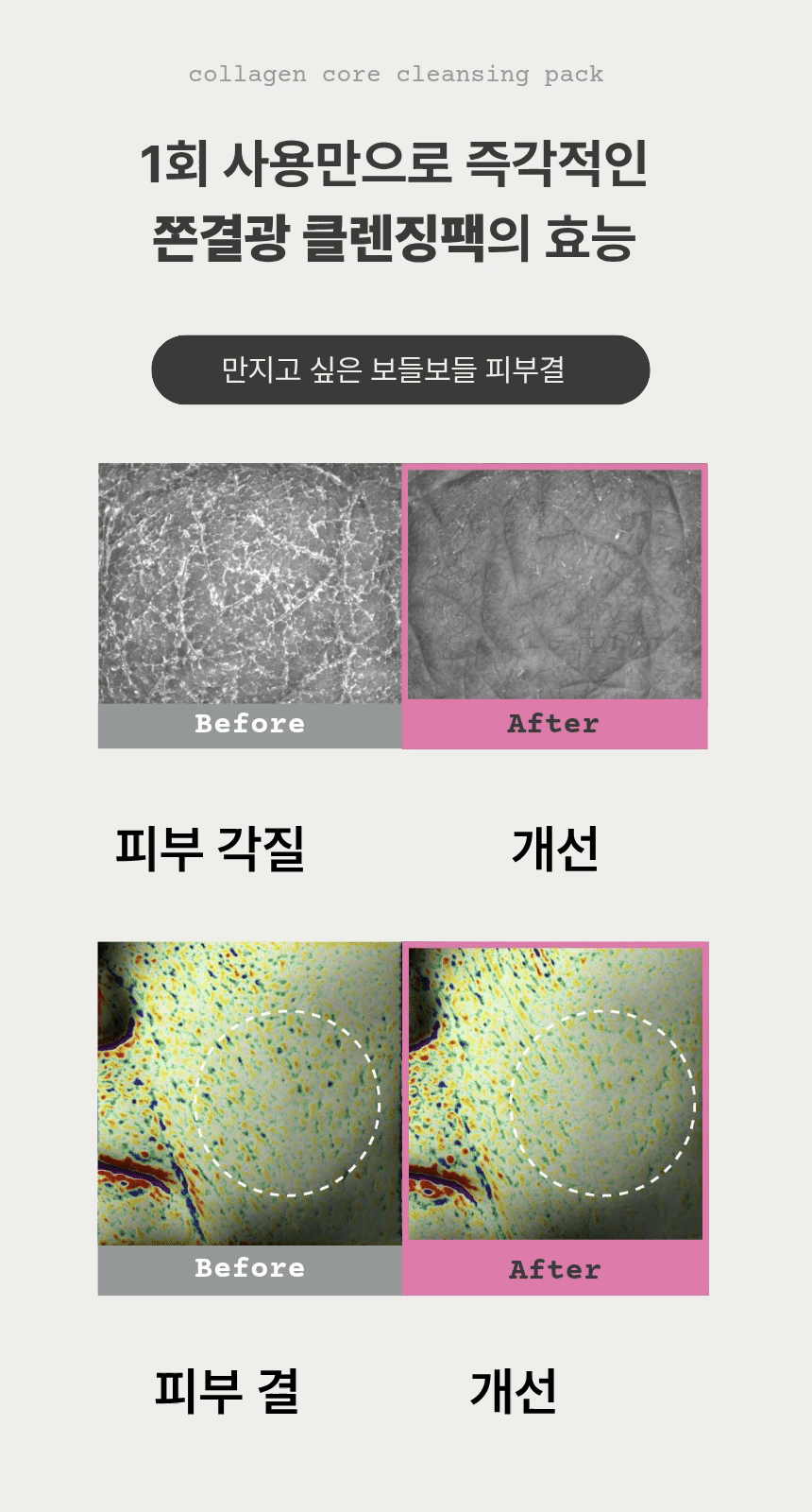 이 철학을 담아 만든 쫀결광 클렌징팩을 가장 먼저 보여드리고 싶었습니다.