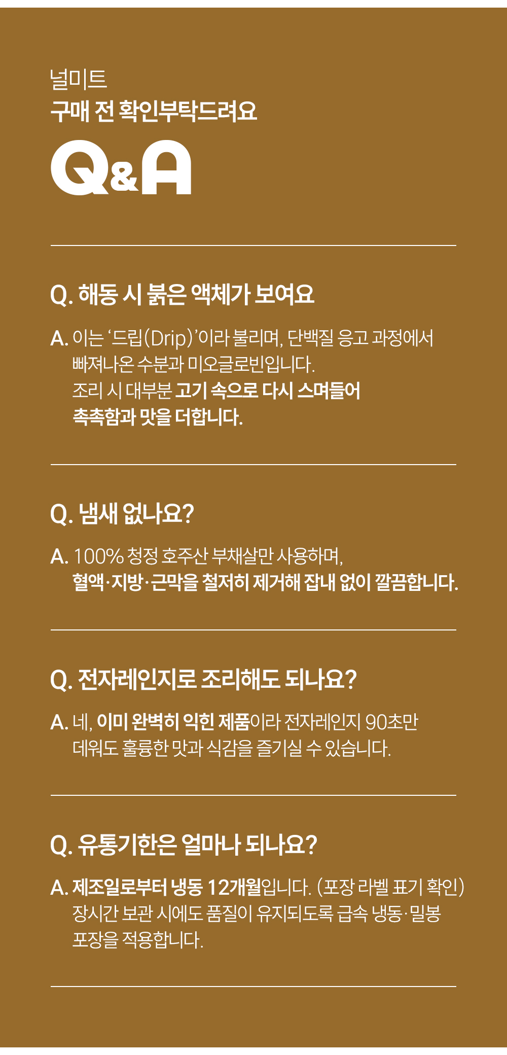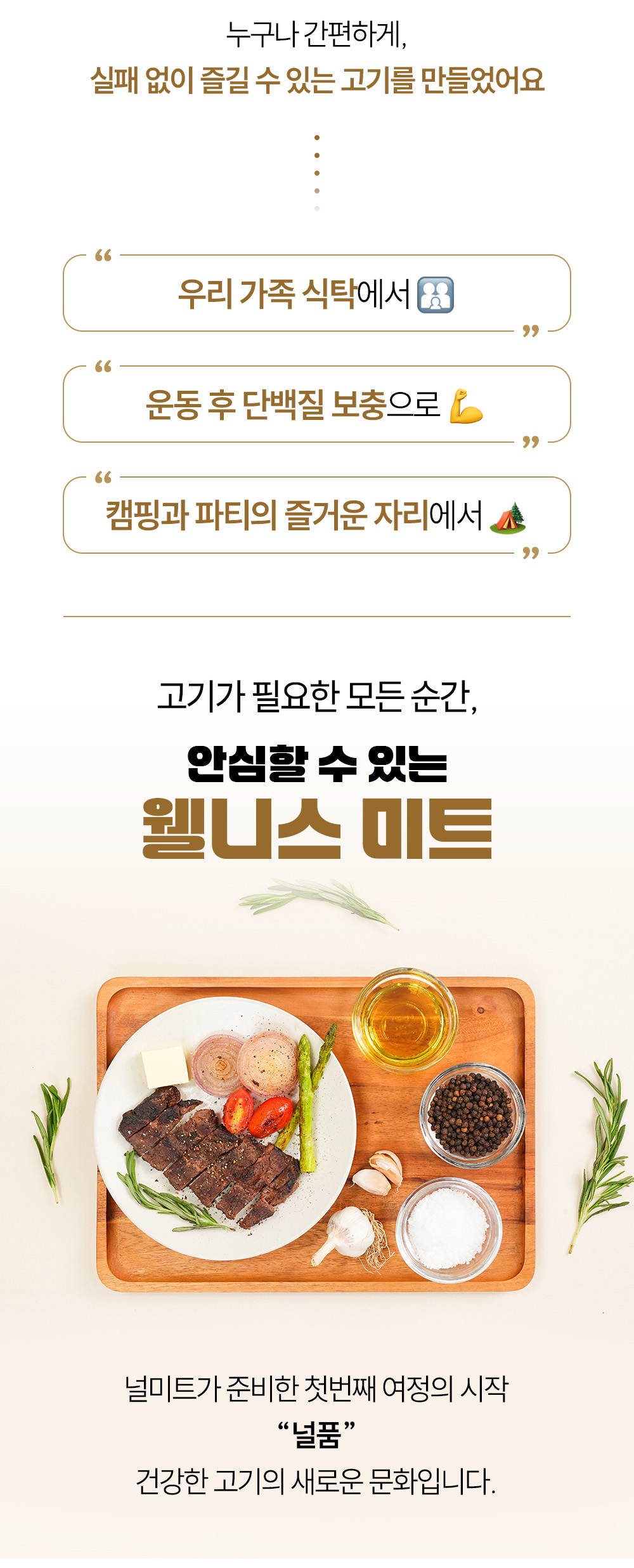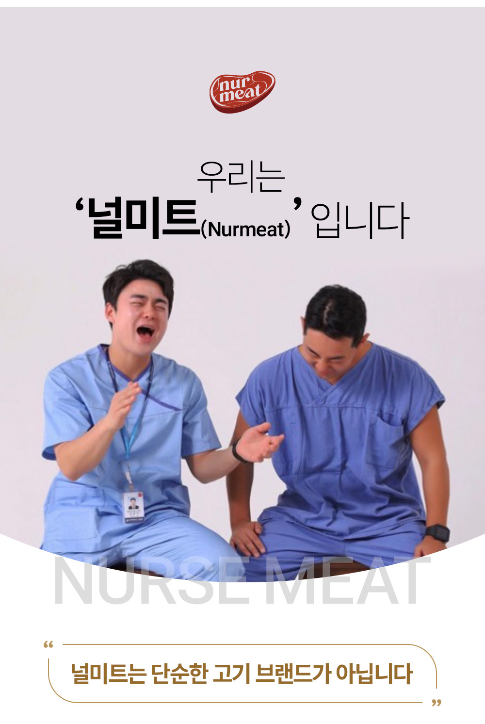 안녕하세요, 널미트입니다. 널미트는 'nurse(간호사)'와 'meat(고기)'의 합성어로 간호사 출신 창업자들이 “건강한 육류 식문화를 만들겠다”는 마음으로 시작한 브랜드입니다 :)