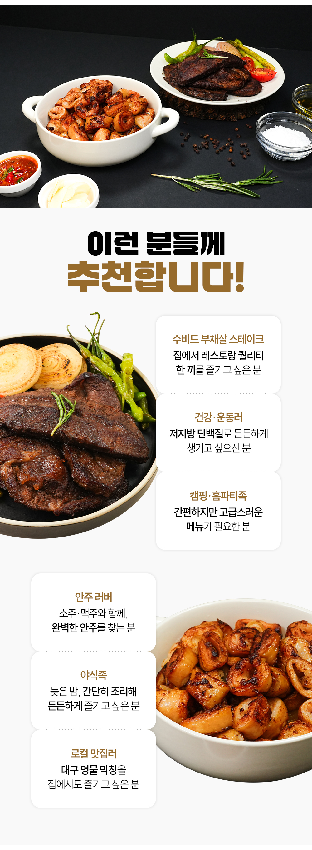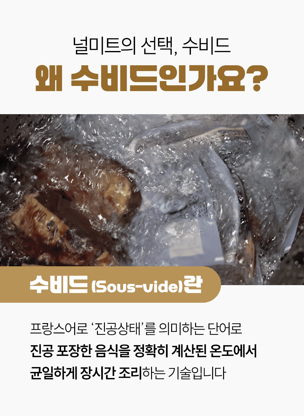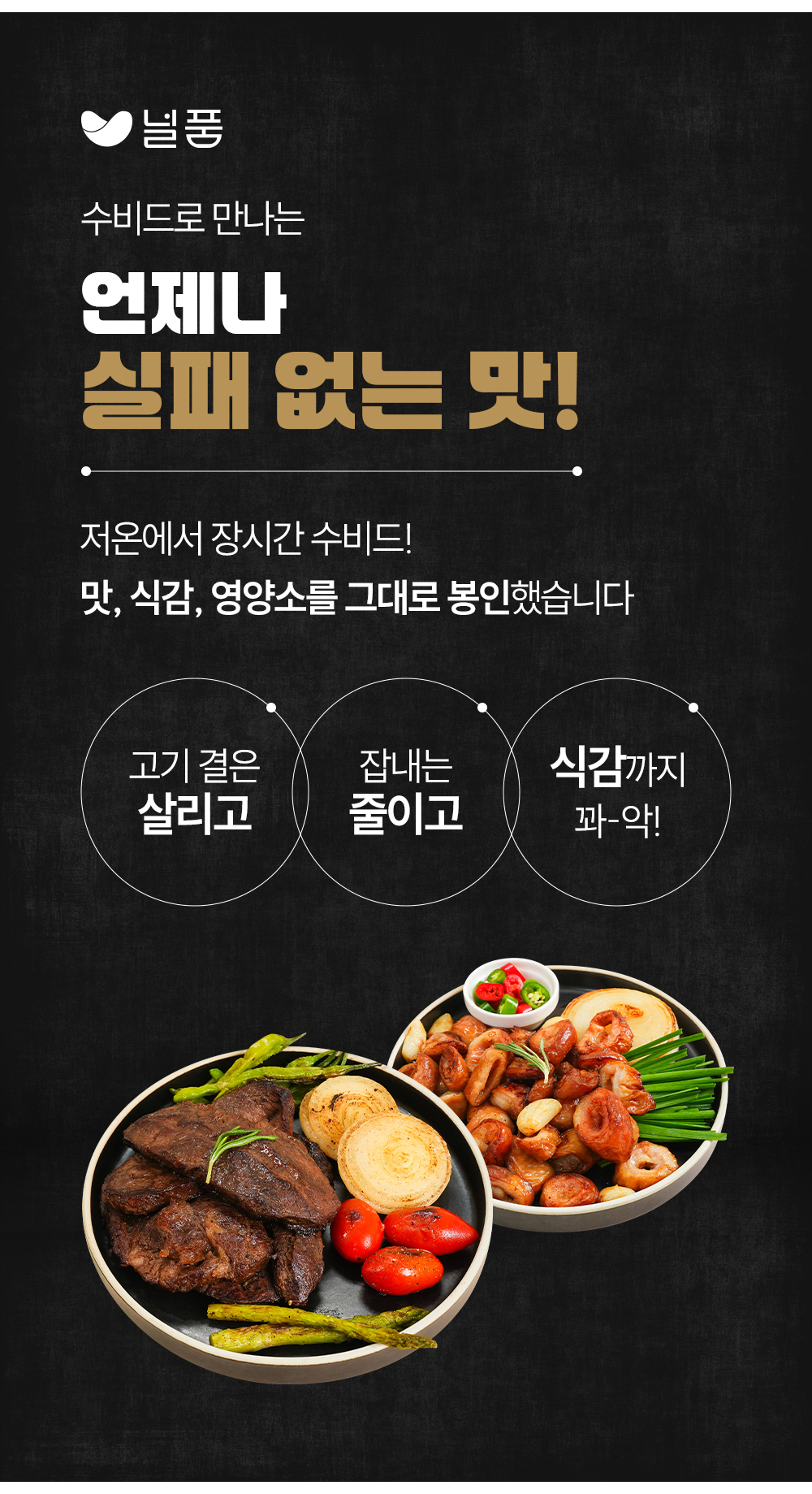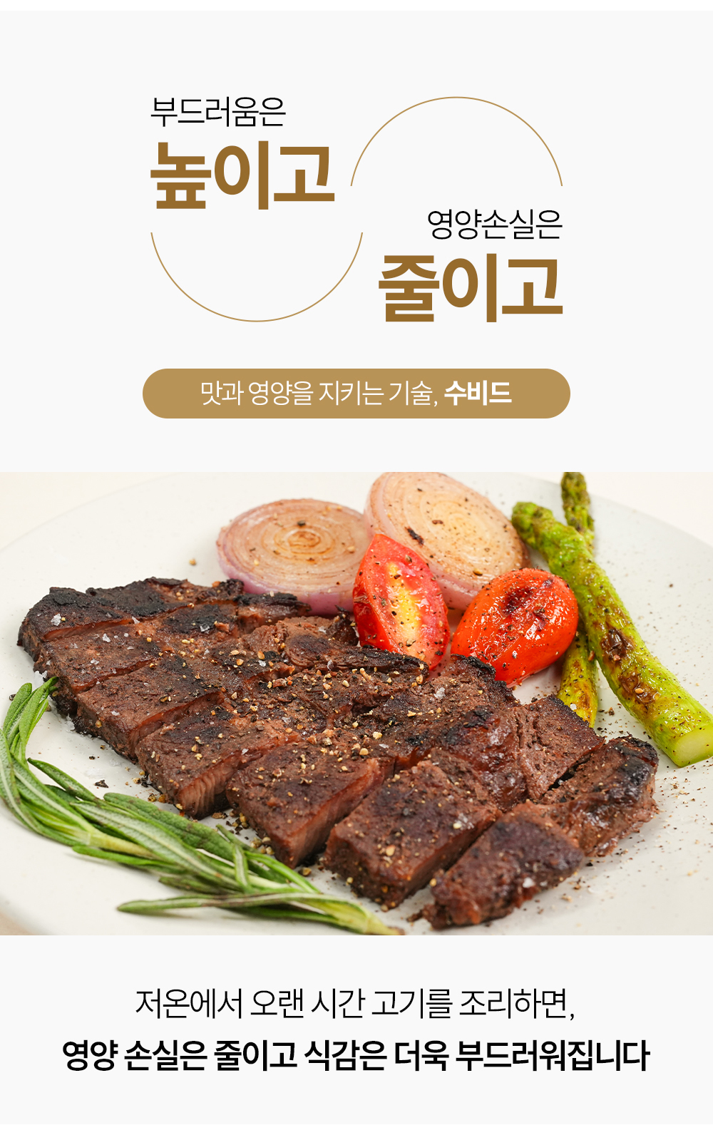 우리는 맛과 건강, 편리함을 동시에 잡는 방법을 고민했고, 그 해답이 바로 수비드 공법이었습니다.