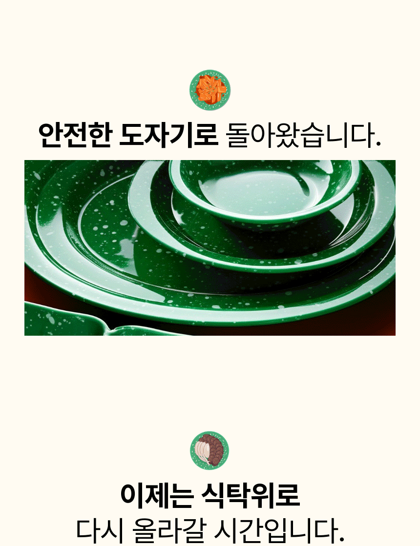 추억의녻색식기는 2년의 개발 끝에 완성된 신제품입니다. 정식 출시 전, 와디즈 서포터님들께만 공개하는 이유가 있습니다.