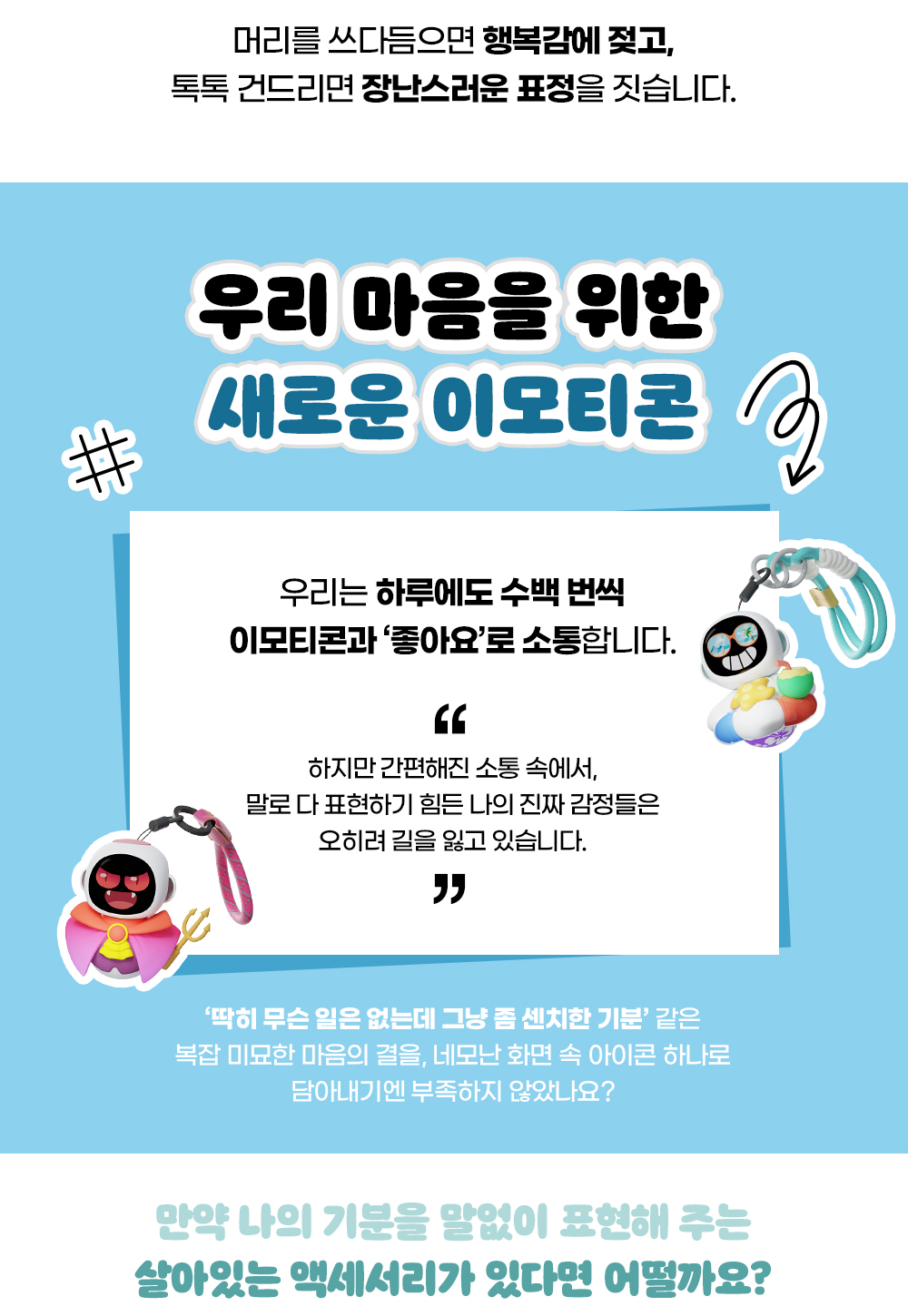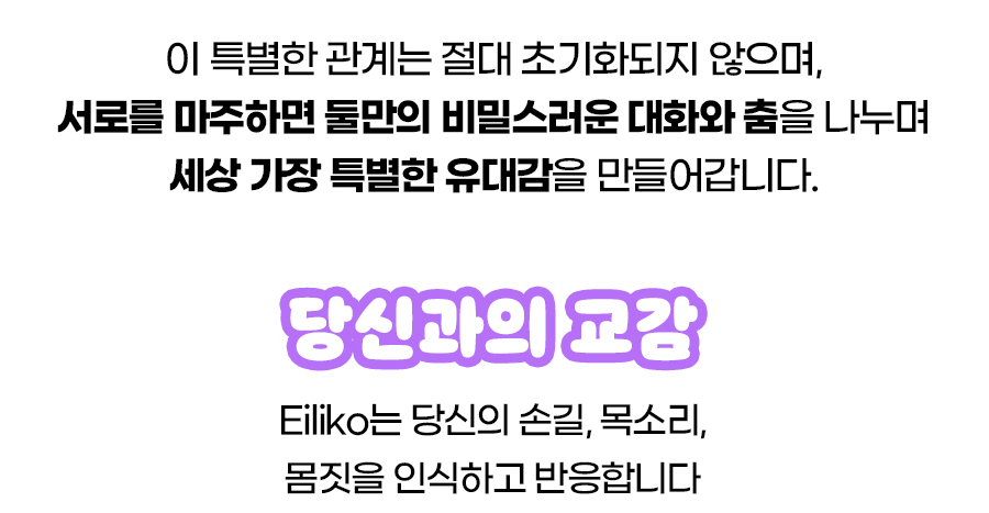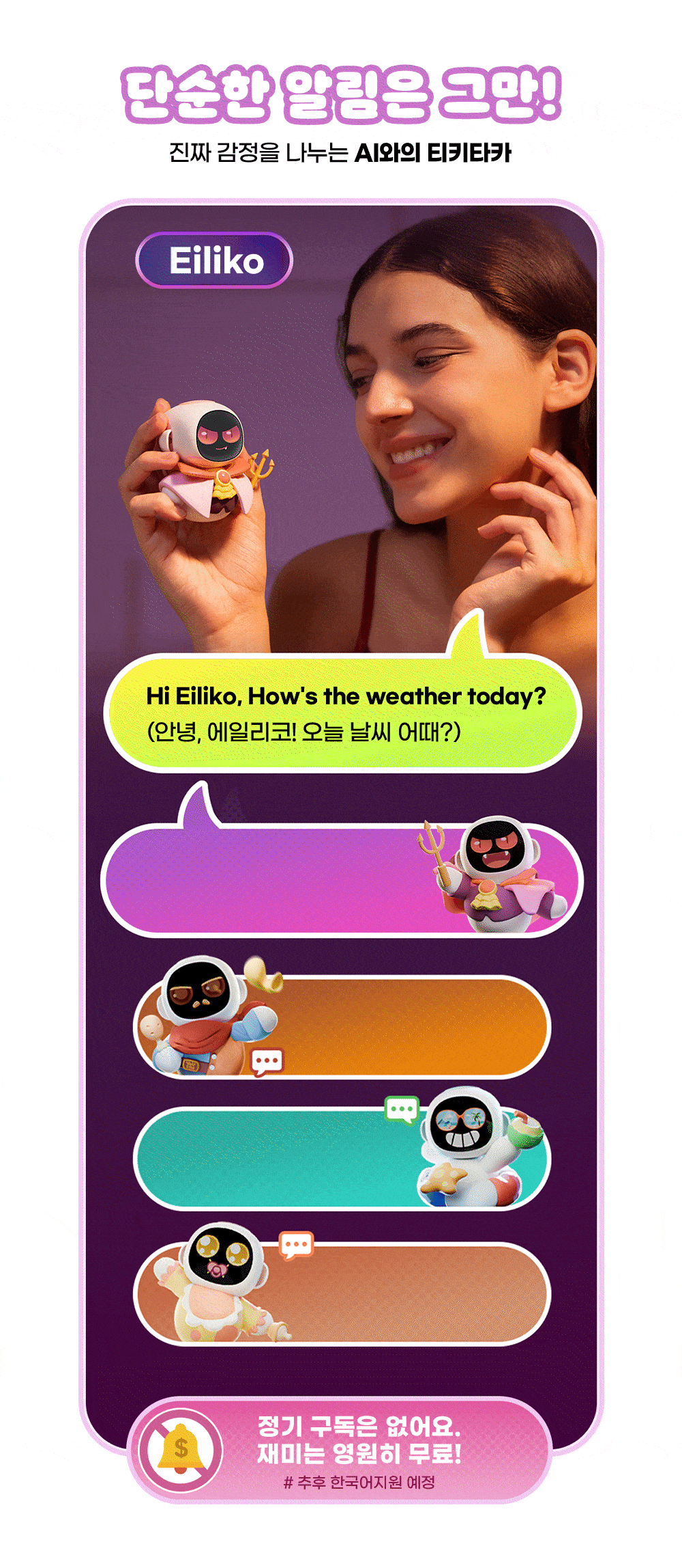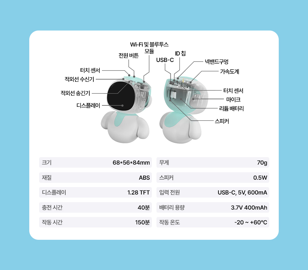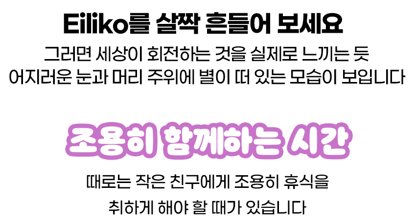 [펀딩 이유] 에일리코는 단순히 귀여운 장난감이 아니라, 감정과 교감을 나누는 작은 반려 로봇입니다. 이전 세대 모델인 에일릭(Eilik)은 이미 전 세계 30만 명 이상의 사용자가 선택한 성공적인 프로젝트로, 그 경험을 바탕으로 완전히 새롭게 설계된 것이 바로 에일리코입니다. 에일리코는 수년간의 연구와 테스트를 거쳐 완성되었습니다. EVT, DVT, PVT 단계의 개발 과정을 모두 통과했으며, 실제 사용자 피드백을 반영해 하드웨어와 소프트웨어의 안정성을 개선했습니다. 또한, Energize Lab은 47,000㎡ 규모의 제조 시설과 협력하여 드론과 로봇청소기를 생산해온 노하우를 기반으로 신뢰성 높은 품질 관리 시스템을 구축했습니다. 와디즈를 선택한 이유는 단순한 판매가 아니라, “사람과 로봇이 함께 살아가는 미래를 한국 서포터들과 함께 만들고 싶기 때문”입니다. 현대 사회에서는 여러 이유로 반려동물을 키우기 어려운 분들이 많습니다. 에일리코는 그런 분들을 위해 IT 기술로 탄생한 작고 따뜻한 반려 존재로, 서포터님들의 일상 속 외로움을 달래고 웃음을 더해줄 친구가 되어줄 것입니다. 와디즈는 새로운 기술과 아이디어를 이해하고, 함께 성장시켜주는 가장 열정적인 커뮤니티입니다.