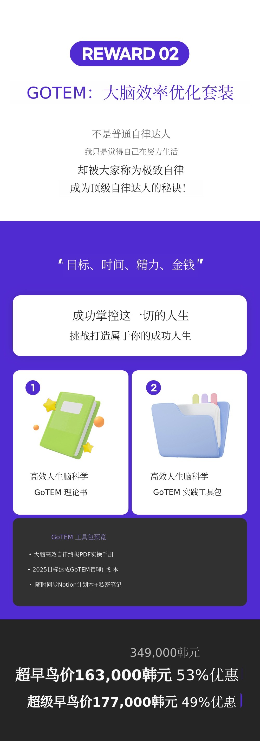 1. 🧠 基于脑科学的脑部黑客 - 2026年升级版优化脑力与效率 2. 📚 系统化学习与实操工具包 - 理论书籍与实操工具支持脑力升级 3. 🎁 独家全能套装 - 众筹专属折扣、1:1辅导及社区入场券
