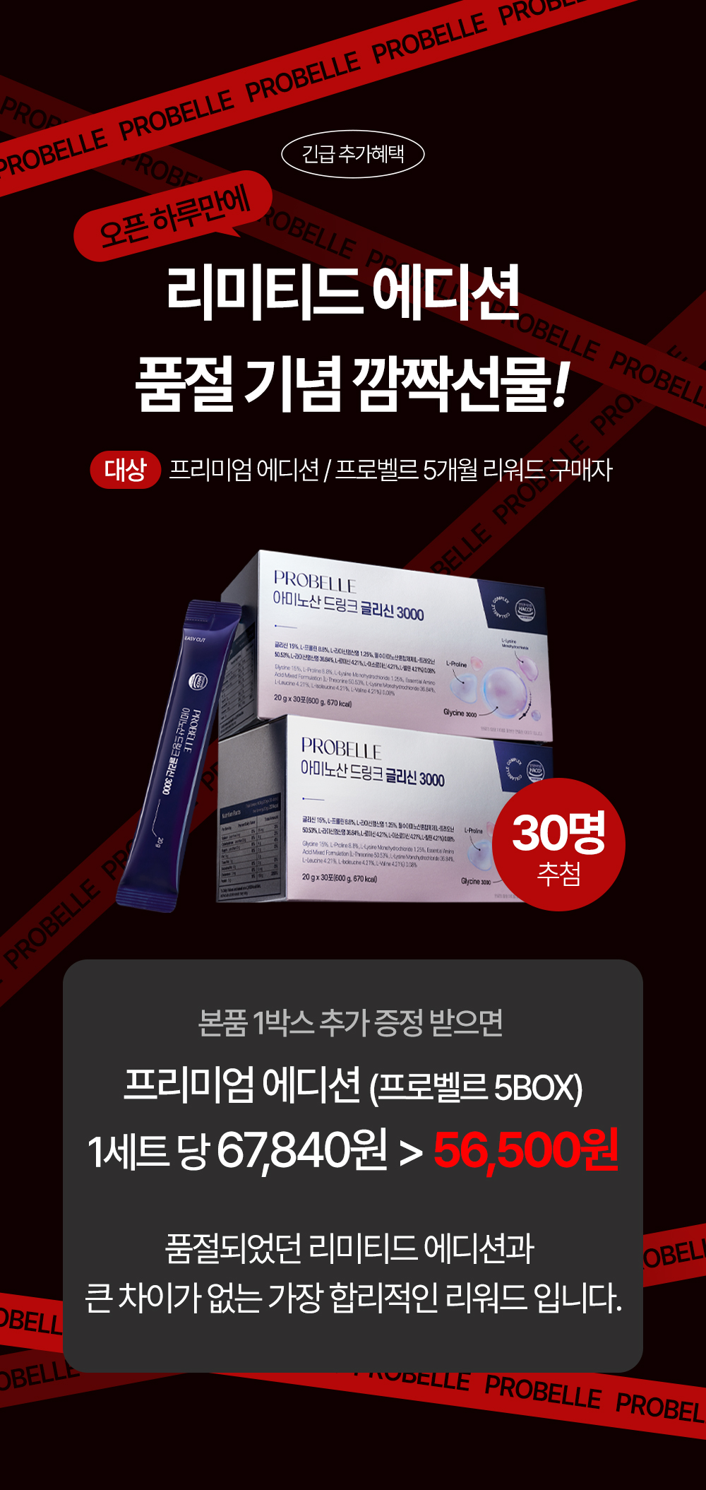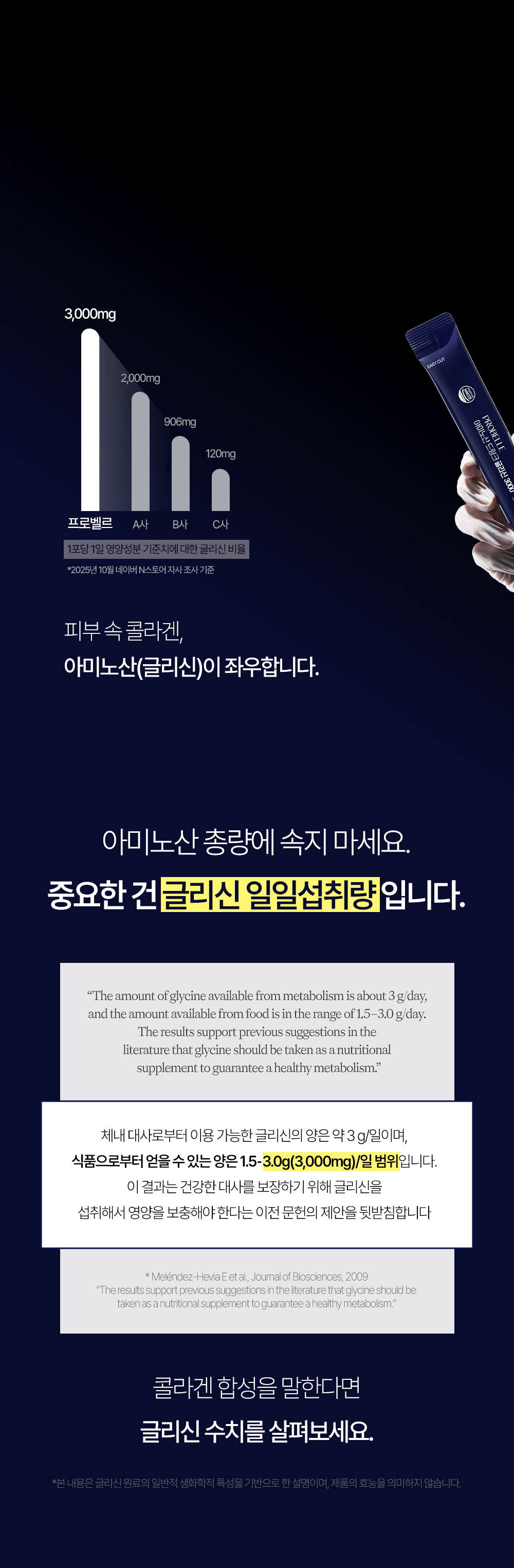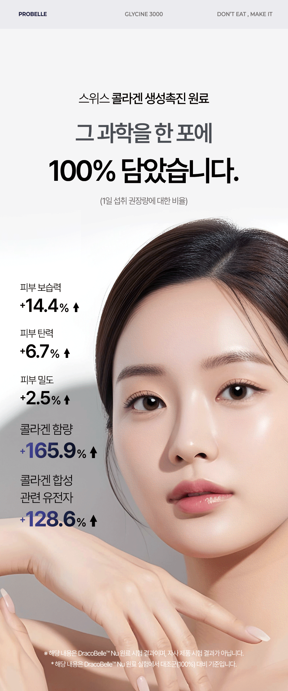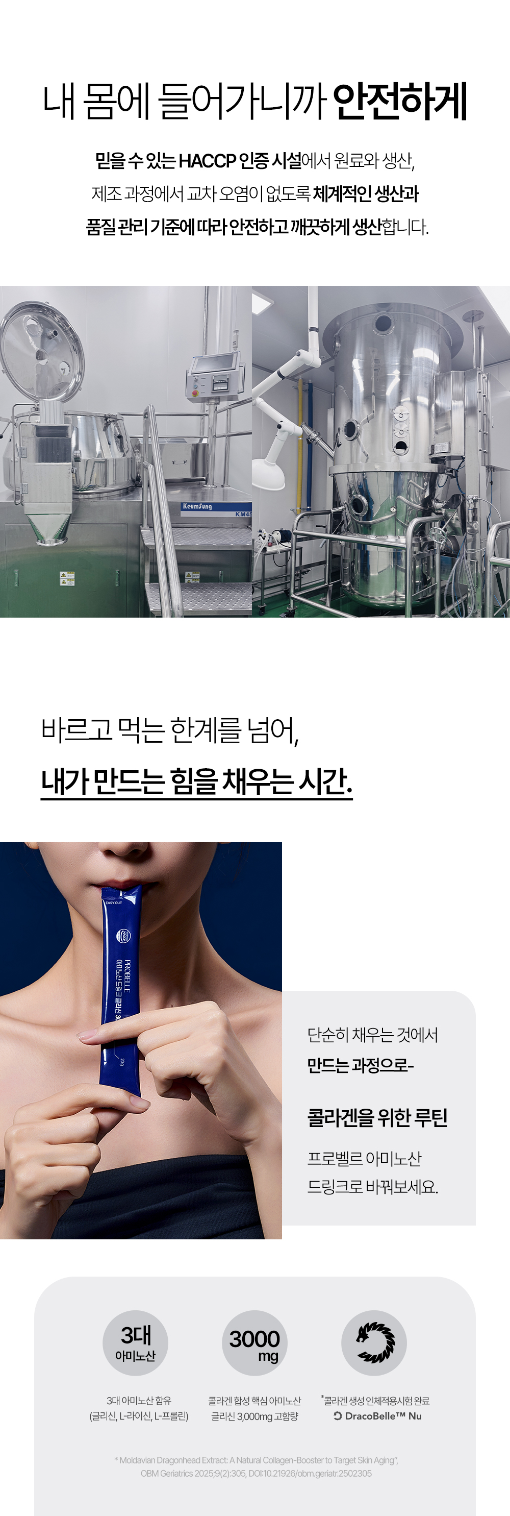 프로벨르는 글리신, 프롤린, 라이신 등 콜라겐 생성의 핵심 아미노산을 치밀하게 배합해 설계하여 콜라겐 합성을 유도하는 포뮬라를 완성했습니다.