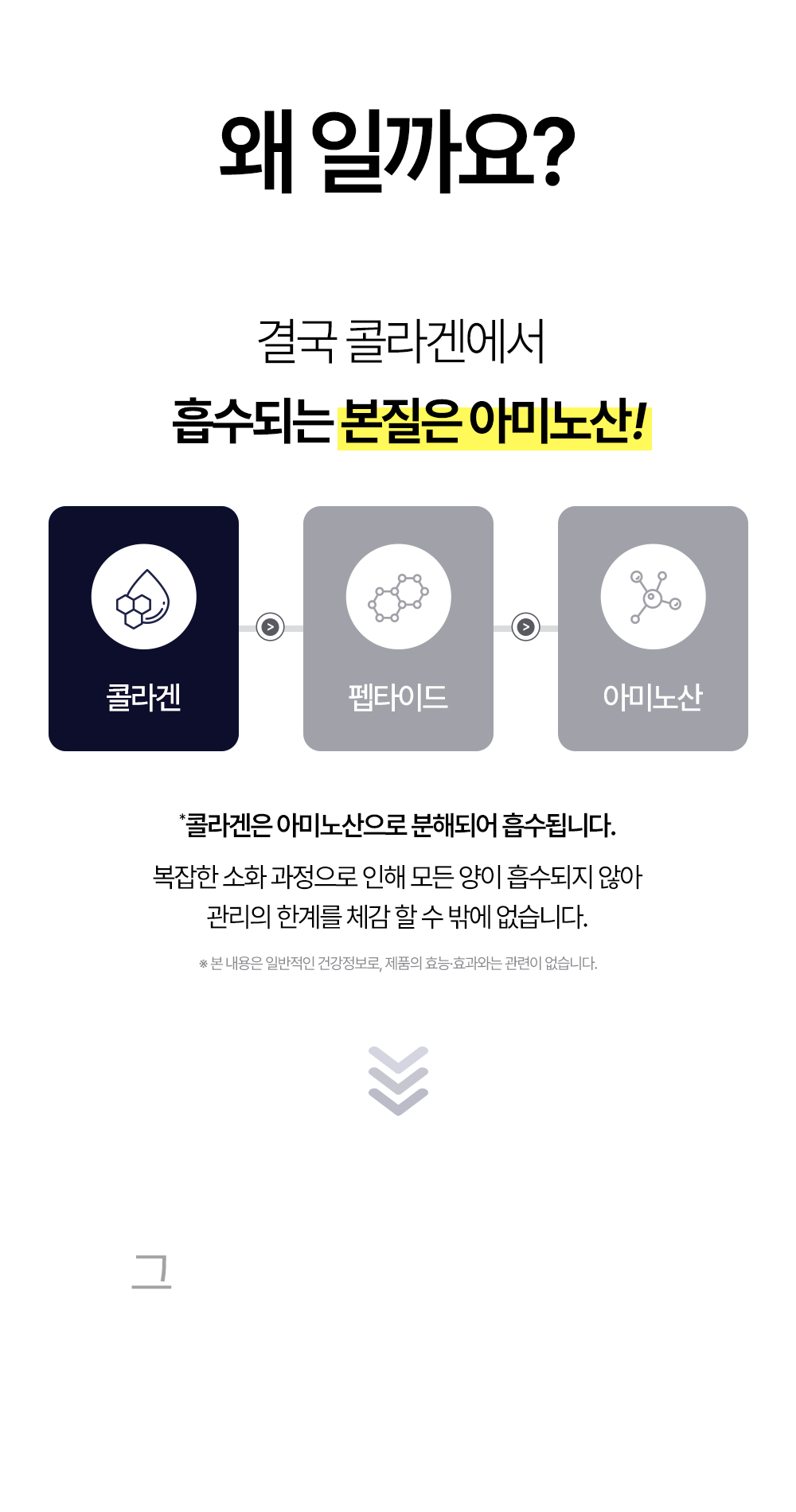 우리는 그 해답을 ‘아미노산’에서 찾았습니다. 콜라겐은 단백질이며, 단백질은 아미노산으로부터 만들어집니다. 따라서 진짜 변화를 위해 필요한 건 콜라겐 원료 자체가 아니라, 그 생성을 촉진하는 아미노산과 활성 인자들입니다.