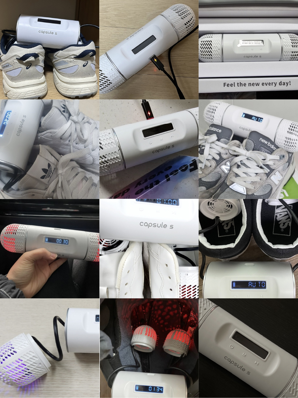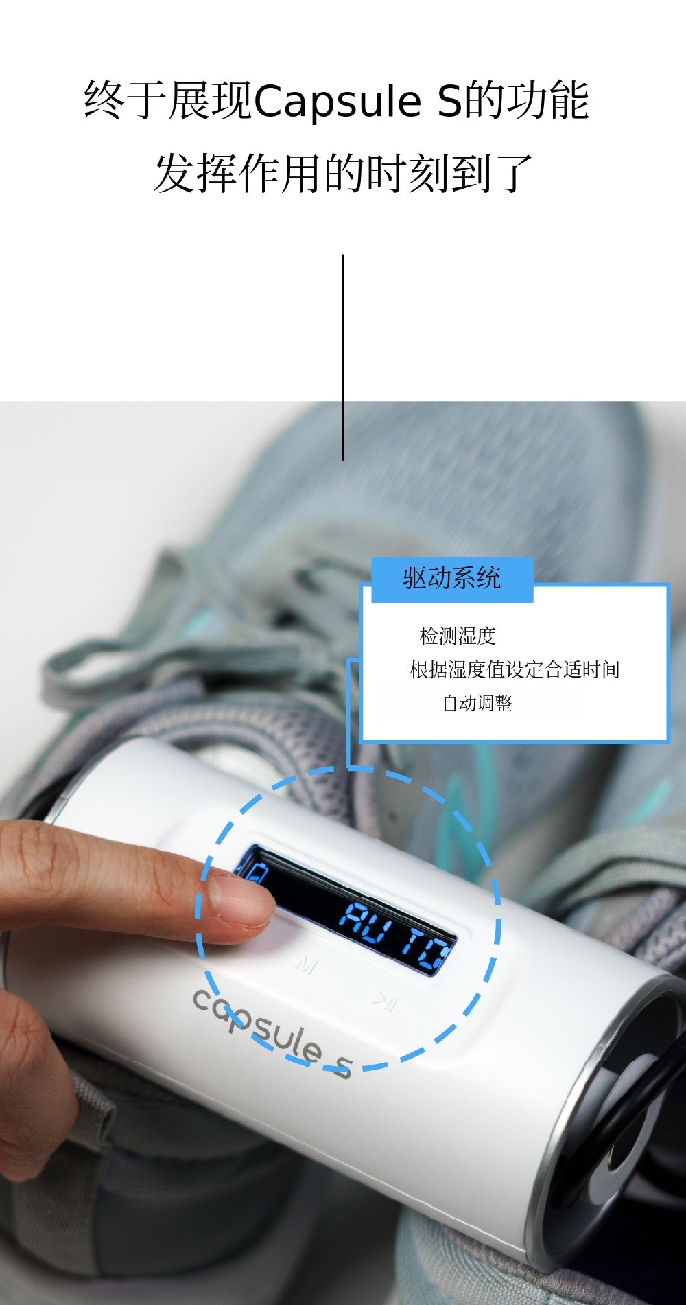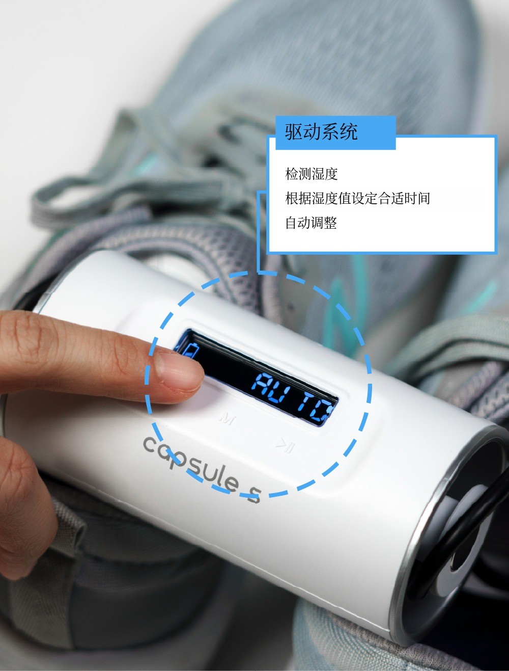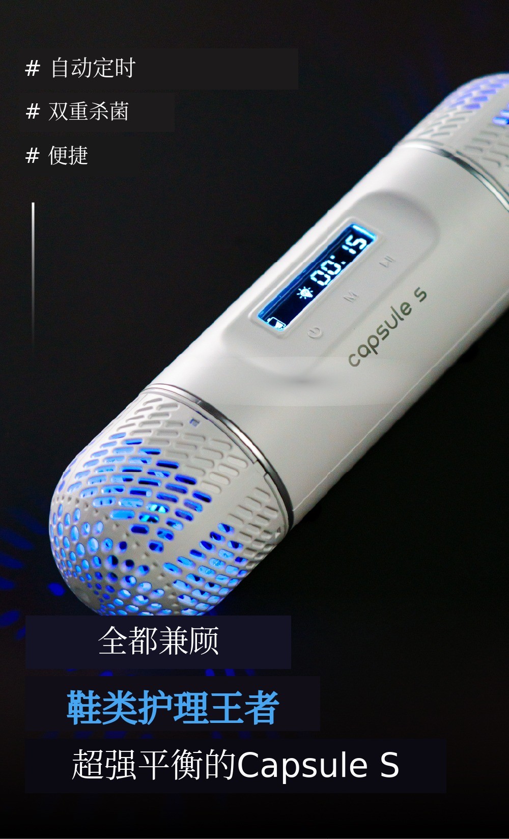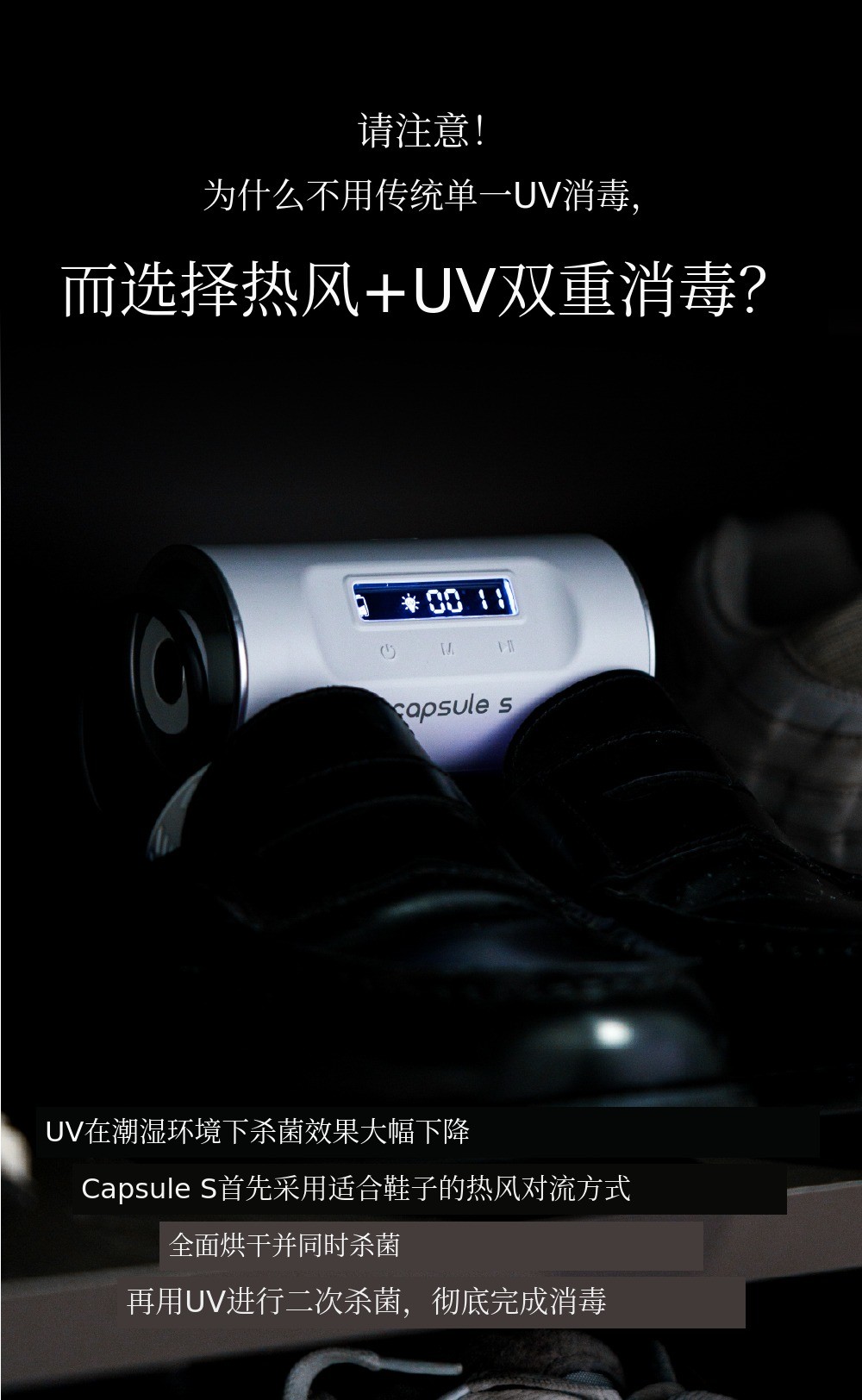 Capsule S是一款通过除臭、杀菌、烘干测试并取得优异成绩的值得信赖的便携式鞋类烘干杀菌器。