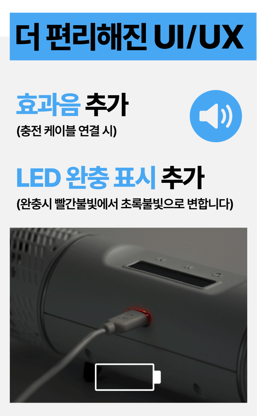 在本次升级的Capsule S中,连接充电线时增加了蜂鸣音,可清楚确认是否正在充电,并可通过机身内置的充电指示灯确认充电状态及是否充满。