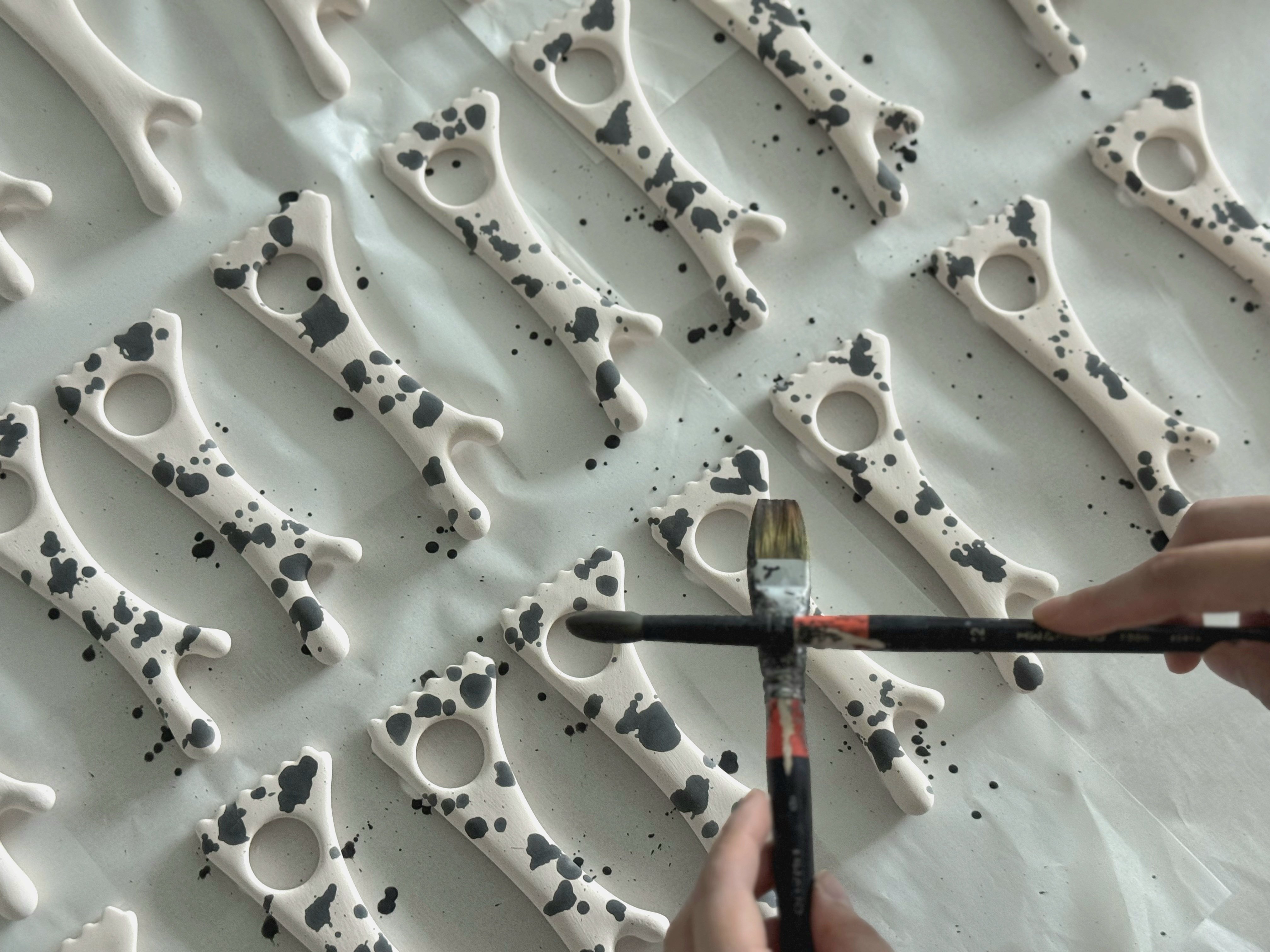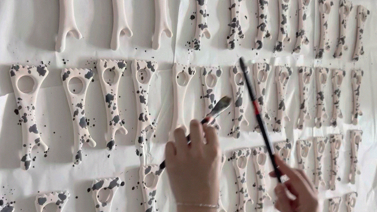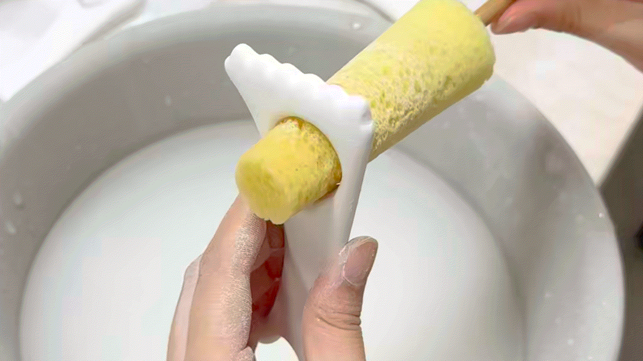 🤎修整釉料堆积的地方,擦拭挂在杆子上的釉料