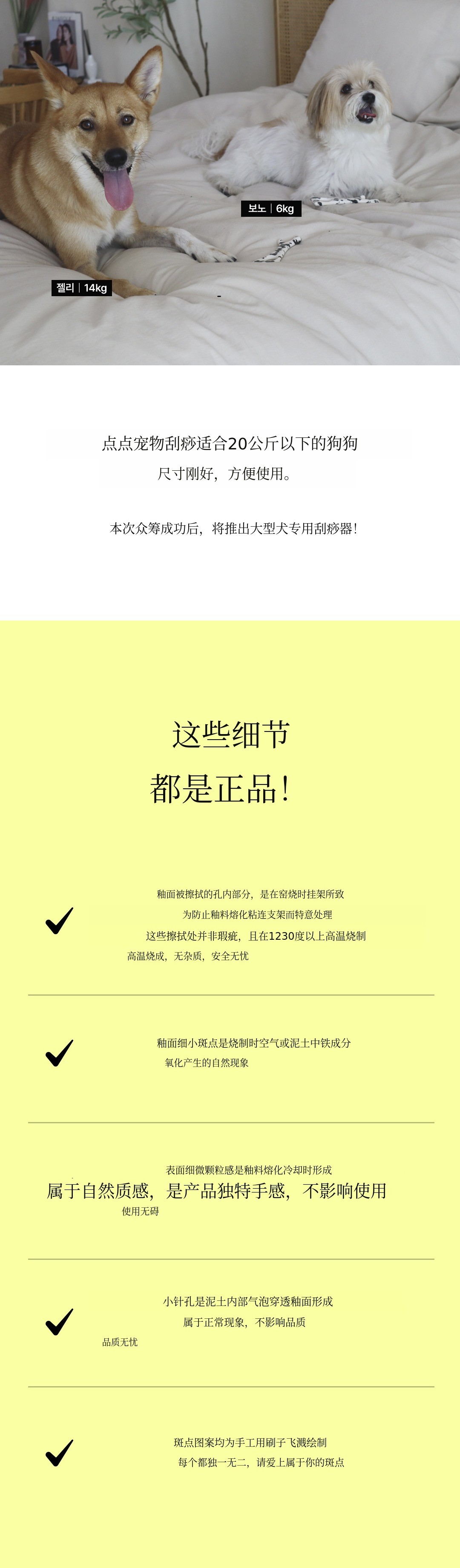 - 在点斑宠物按摩器停产之前,将把销售收益的2%捐赠给需要保护的动物。 本着要做一辈子的想法进行开发。