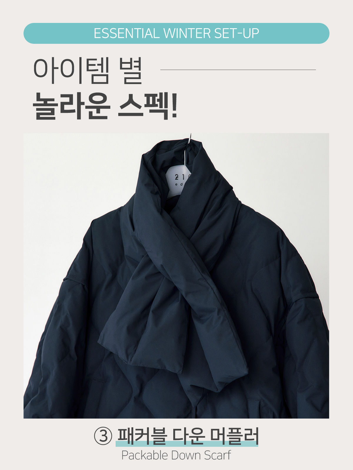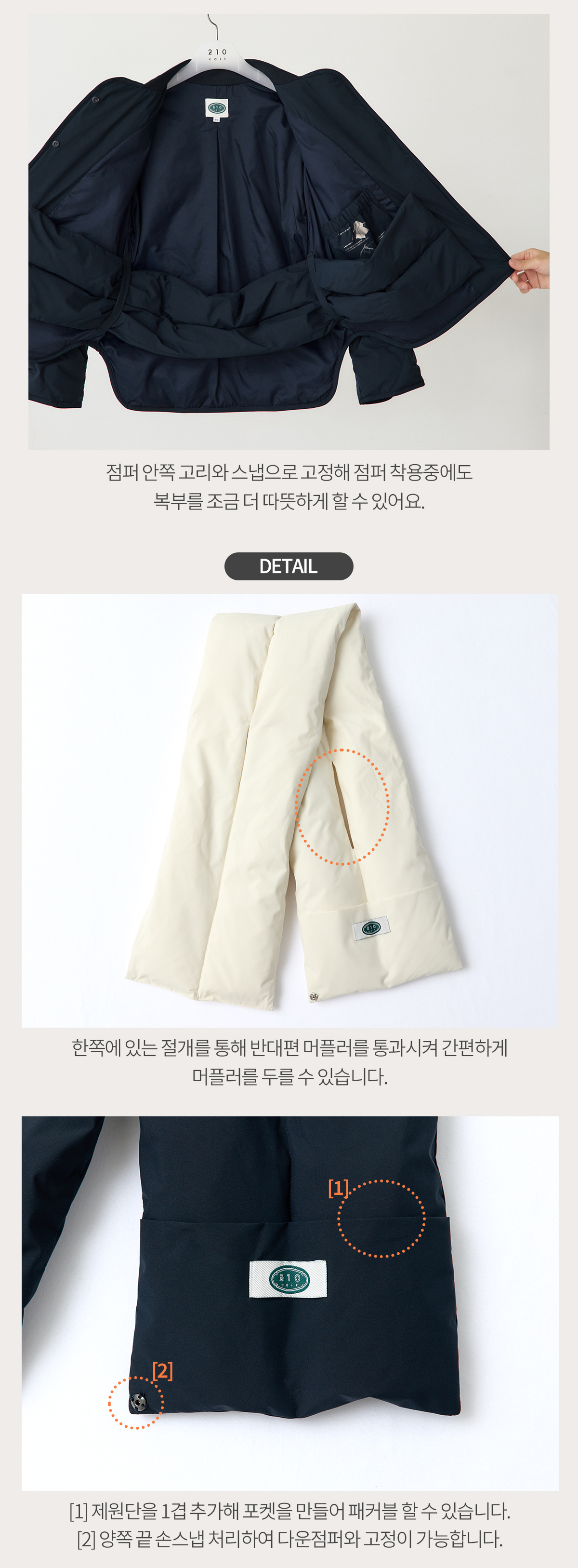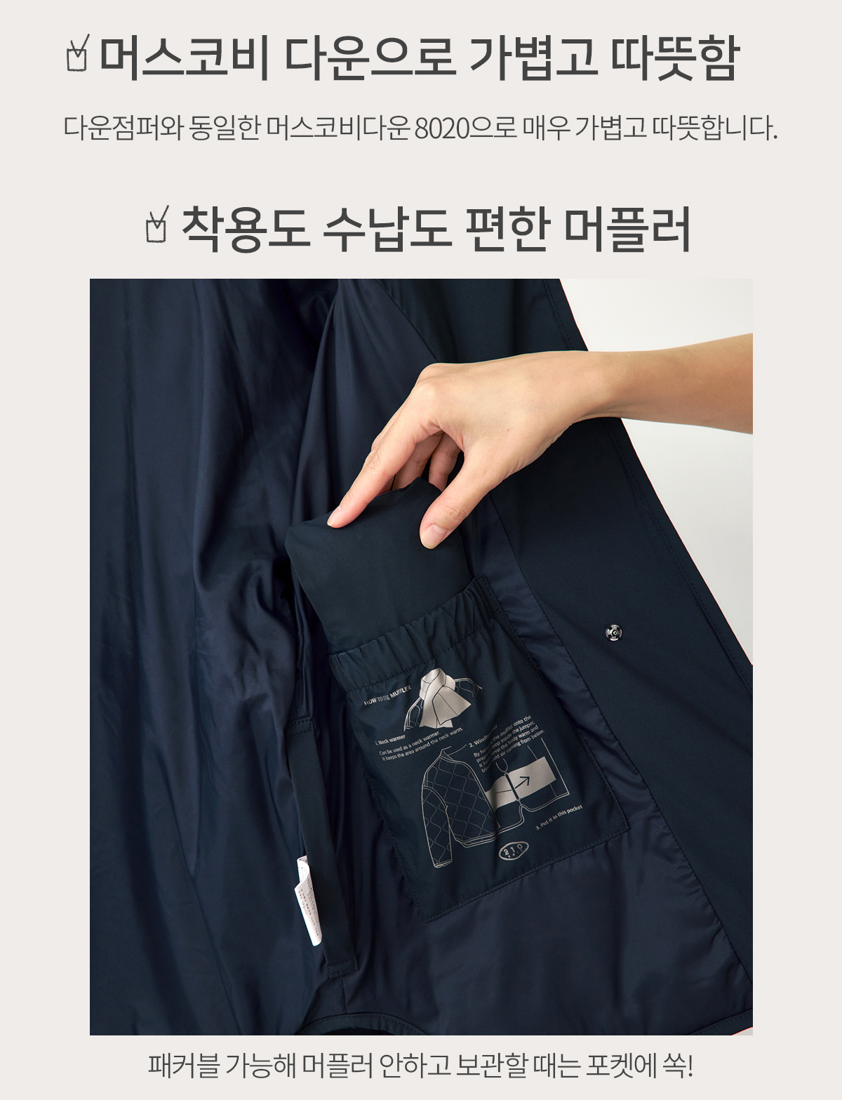 *패커블 후 사용시에는 다운 머플러를 펴놓은채로 빵빵해질때까지 기다려주세요.