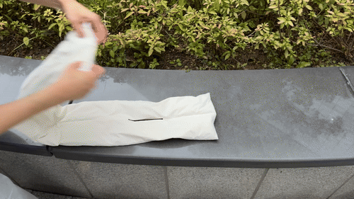 *머스코비 다운을 사용해 필파워가 매우 뛰어나 패커블시 꾹 눌러 공기를 짜내듯이 말아주세요.